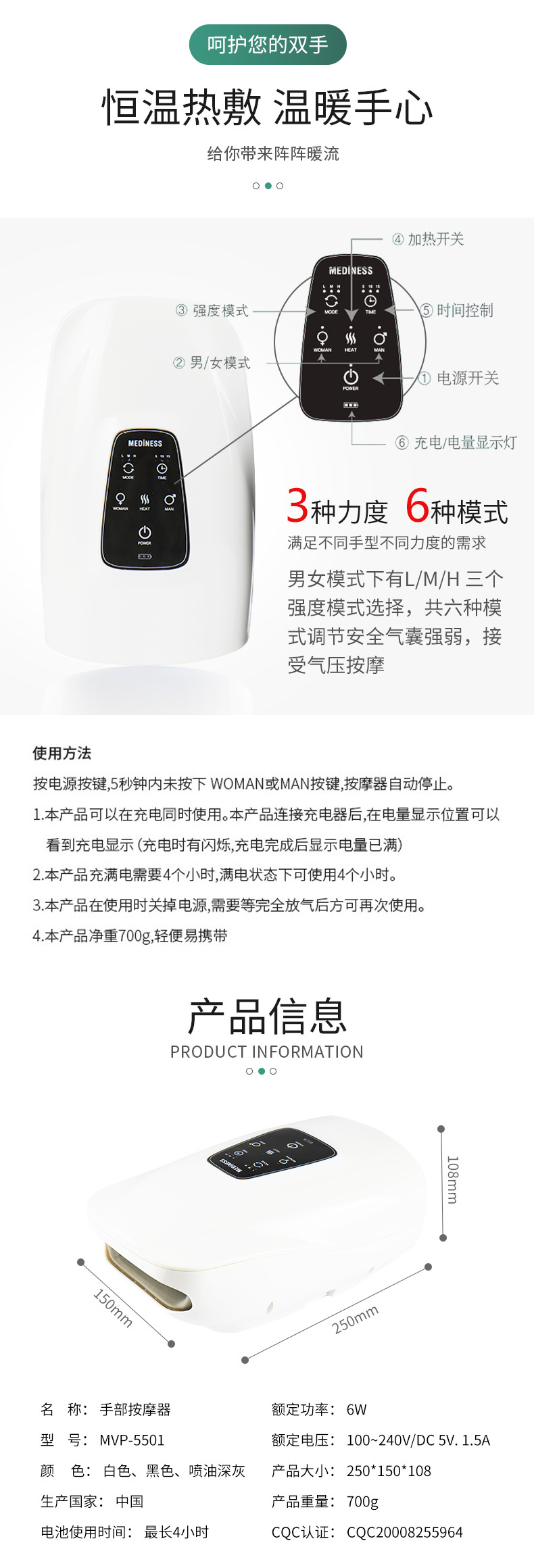 智能手部按摩器手指按摩器美手仪手指手掌手腕关节加热敷气压分指