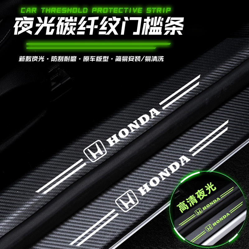 跨境汽车门槛条碳纤纹车门保护贴脚踏板防撞保护改装装饰门槛条贴