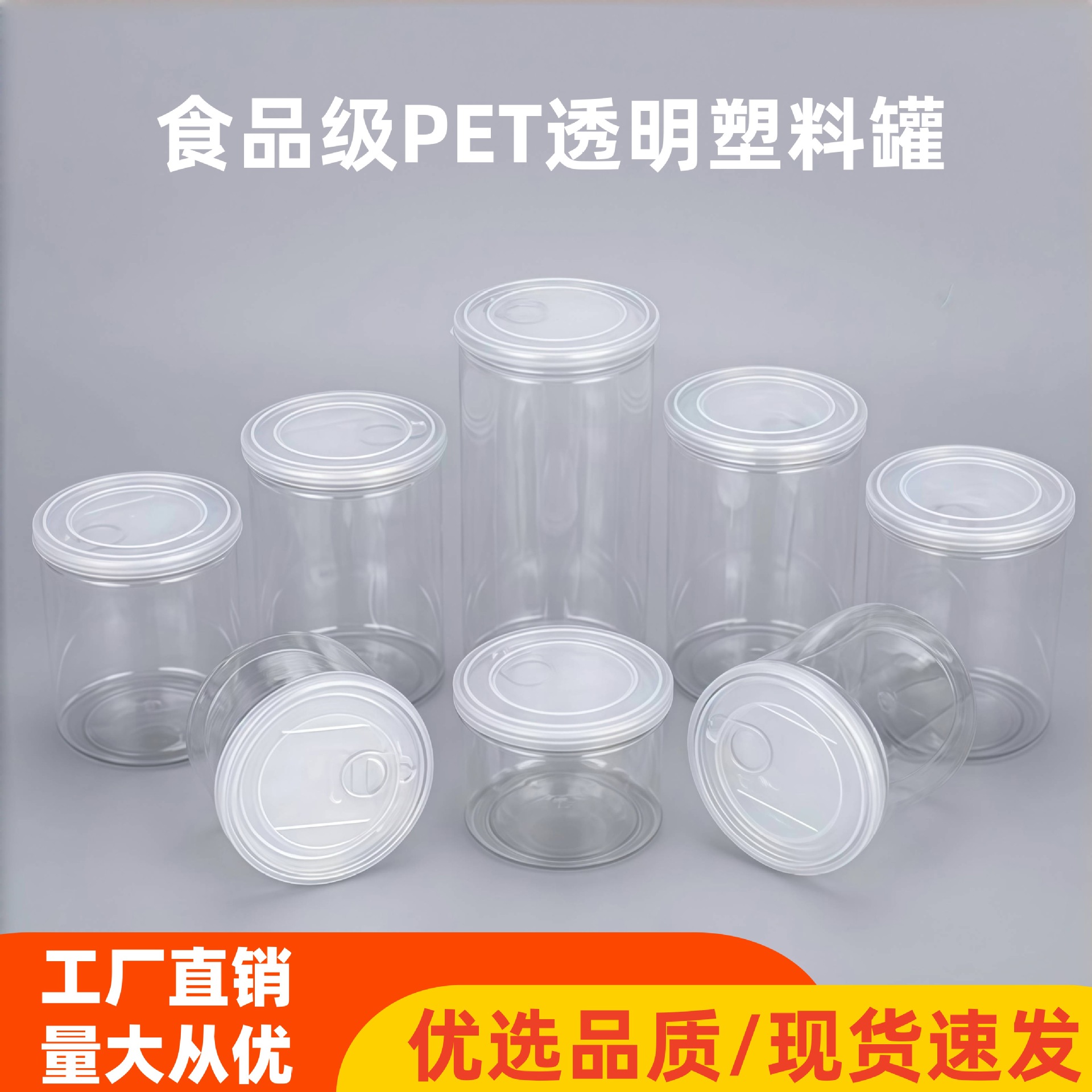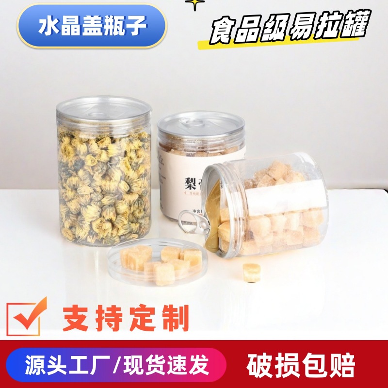 メーカー卸売りペットボトル缶水晶蓋petプラスチック缶透明小海鮮食品缶缶缶