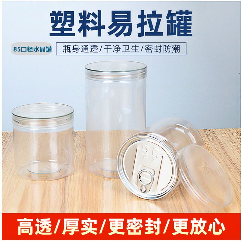 85口水晶蓋缶pet透明密封缶円形食品級広口瓶缶包装ロット
