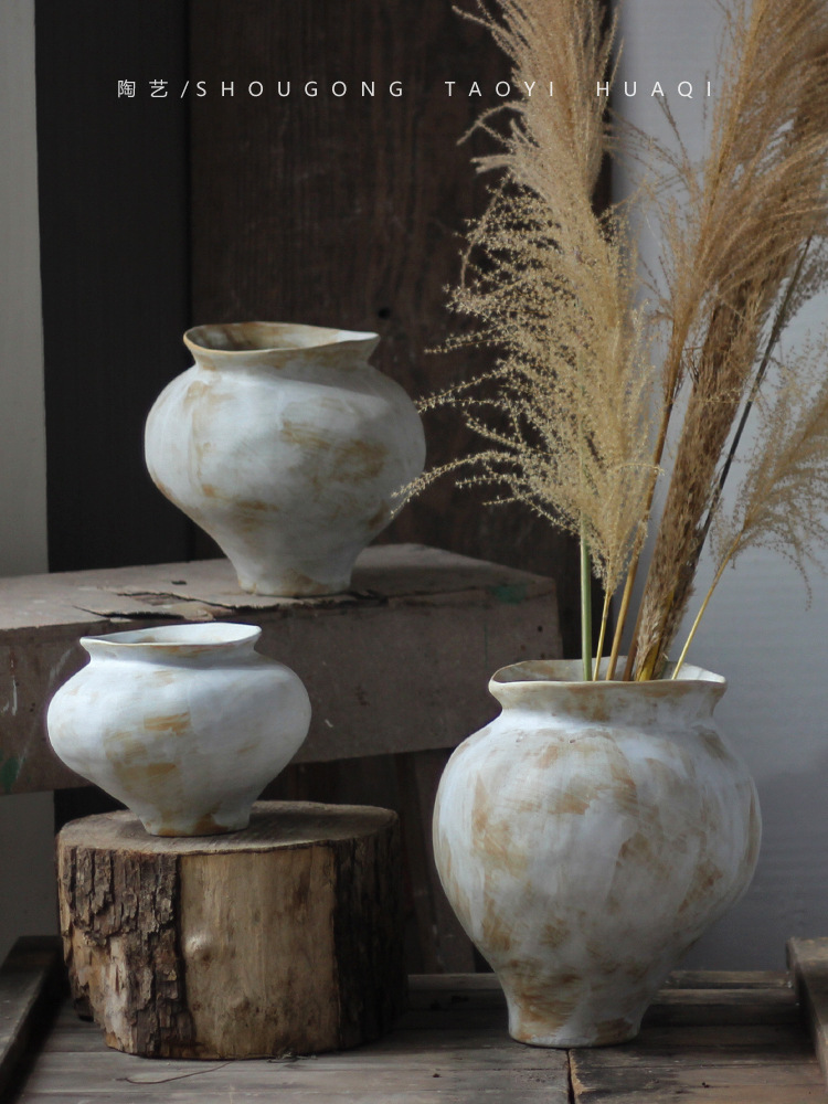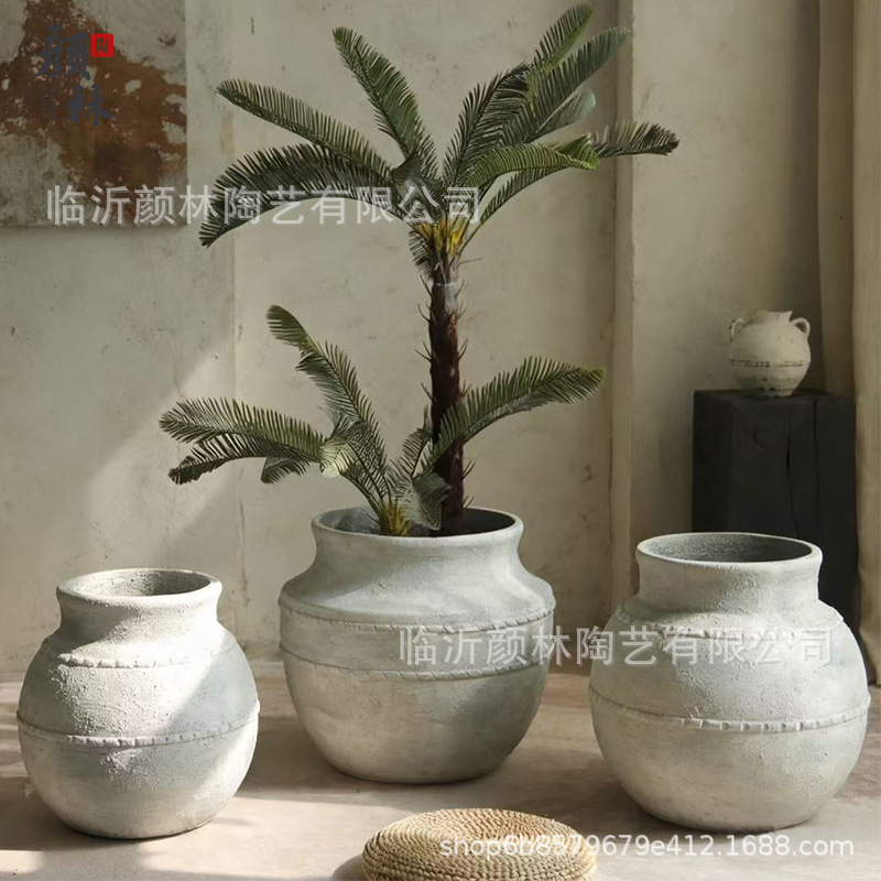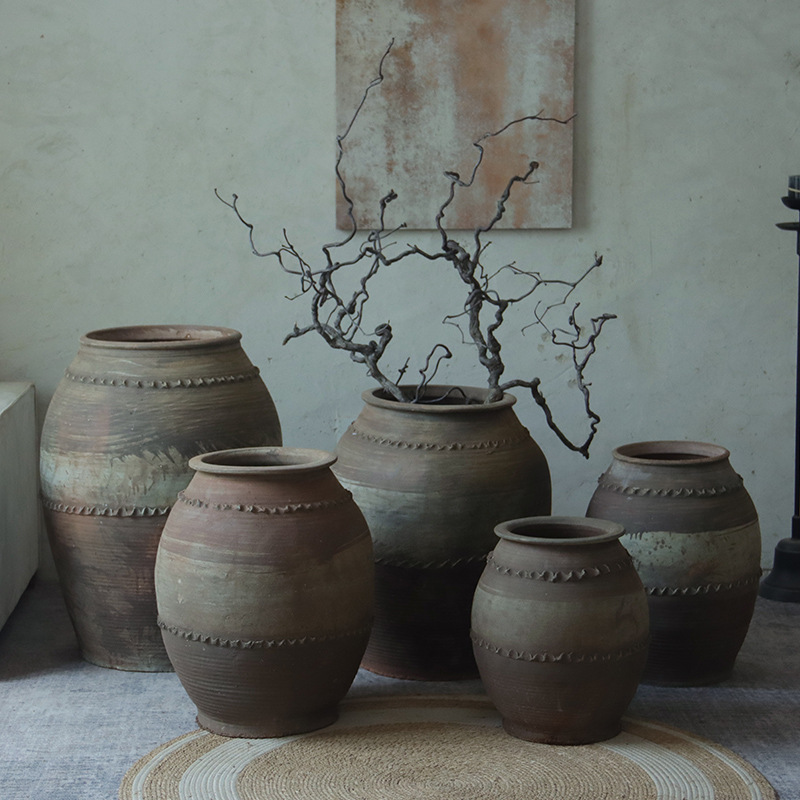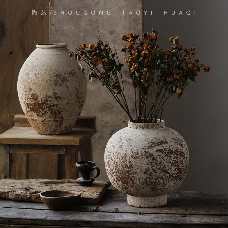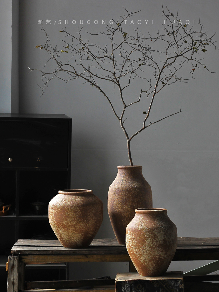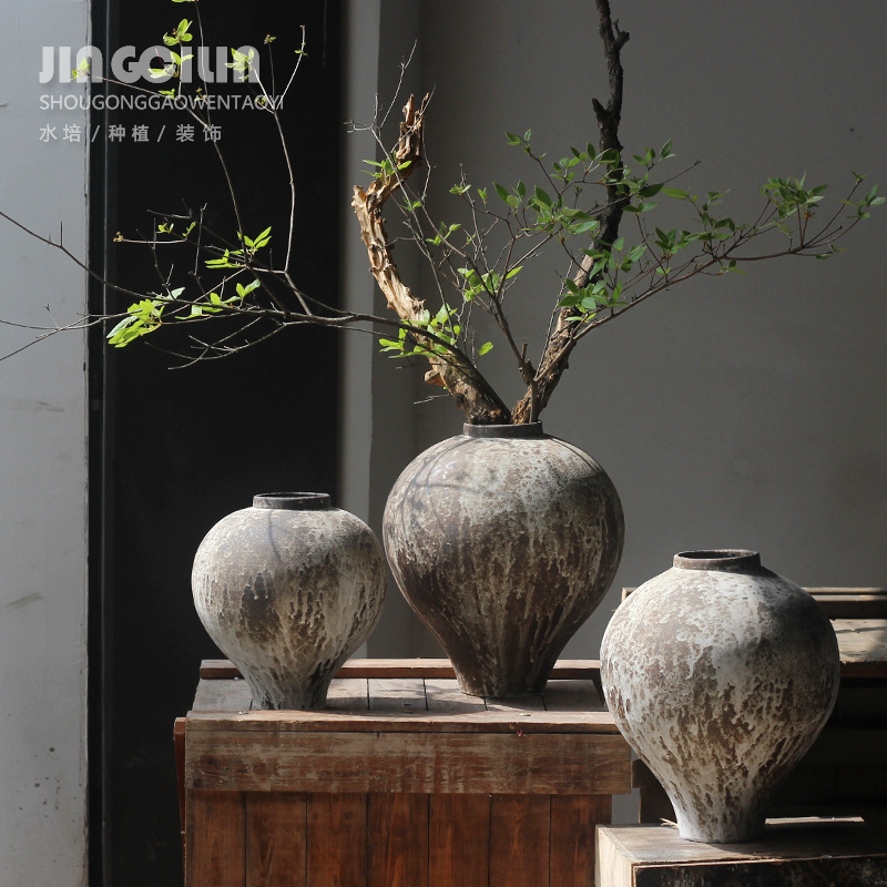 寂風復古花瓶粗陶民宿陶缶新中国式陶磁器挿し花器ベランダ植木鉢家庭置物