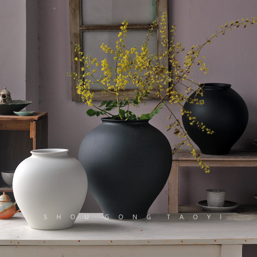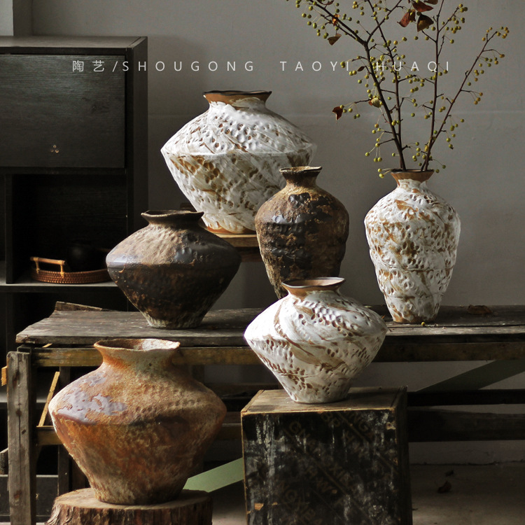 レトロ寂風会室内花瓶民宿置物ホテル家庭陶磁器花瓶禅意粗陶陶缶
