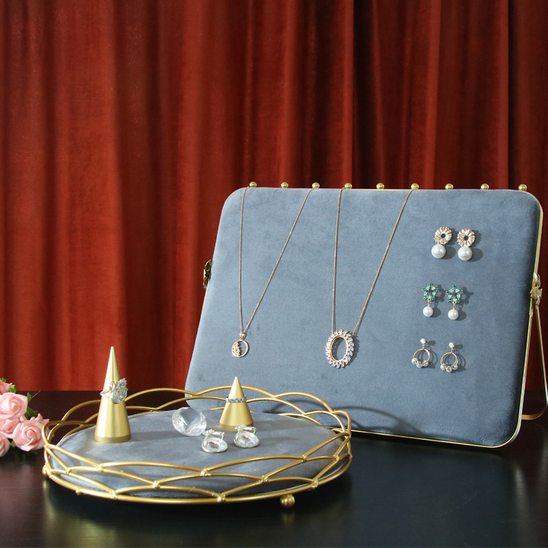 ネックレスセット多用途棚ソフトバッグ展示棚店舗専用グレーベルベットジュエリー陳列棚ジュエリー道具