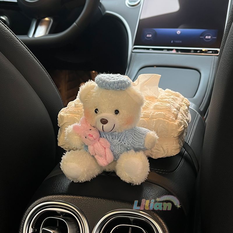 車のティッシュボックスアームレストボックスシートタイプ車のティッシュボックス装飾用品かわいいクマ漫画インターネット有名人の車女性用