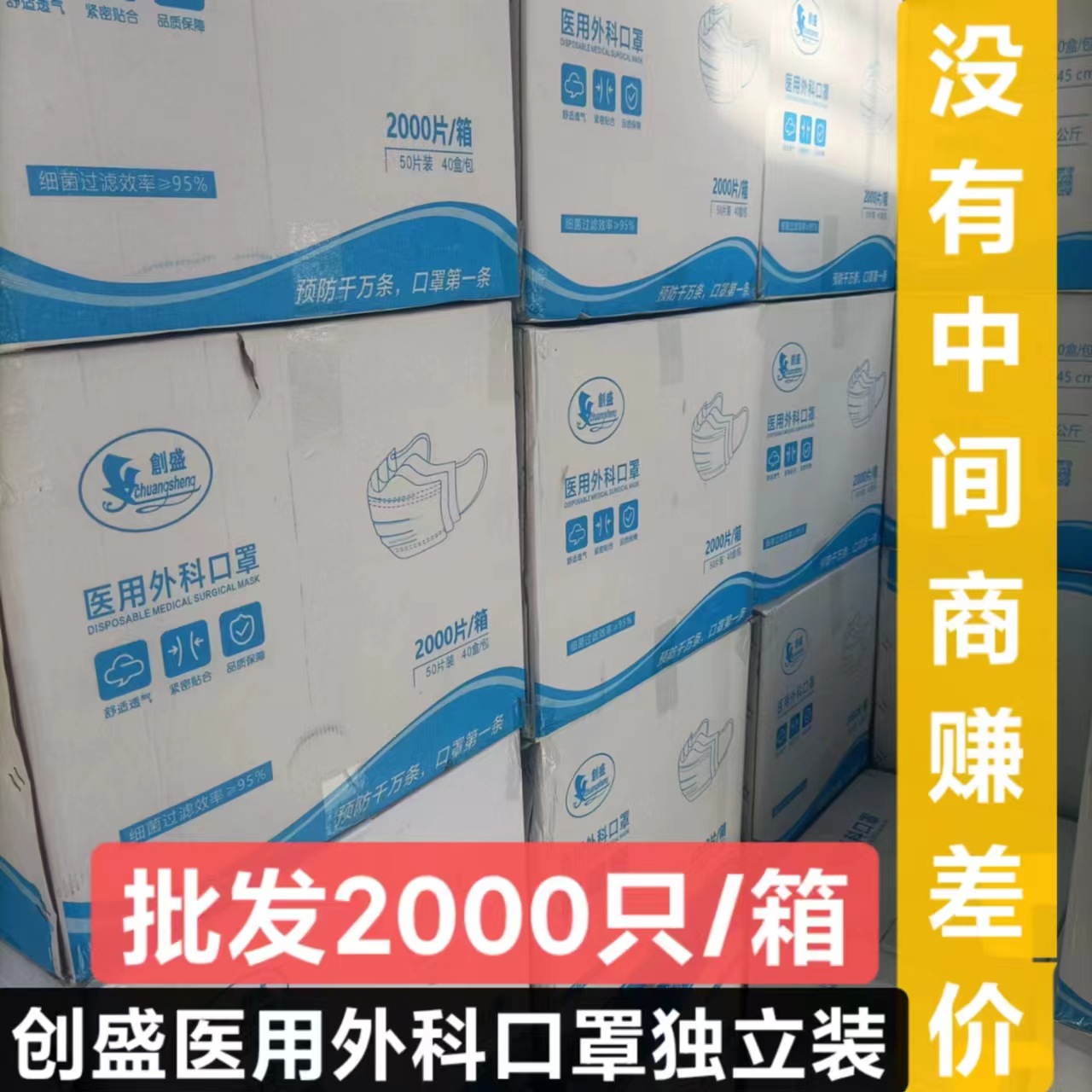 正規品創盛医療用サージカルマスク使い捨て個別包装医療用2000枚入りフルボックス工場価格保護
