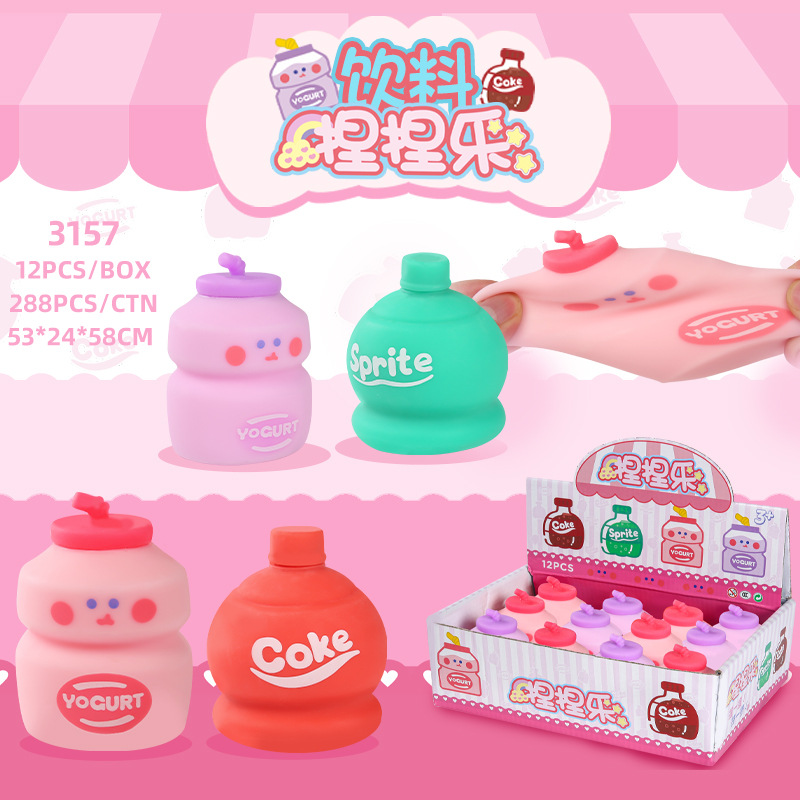 ミニドリンクボトルのミルクカップのコーラをシミュレーションして子供のおもちゃをほじくります。
