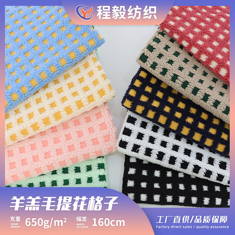 ラムウール逆吹きジャカードチェック柄生地、粒状ベルベットワッフルベルベット生地、ジャケット、ホームテキスタイル、枕生地