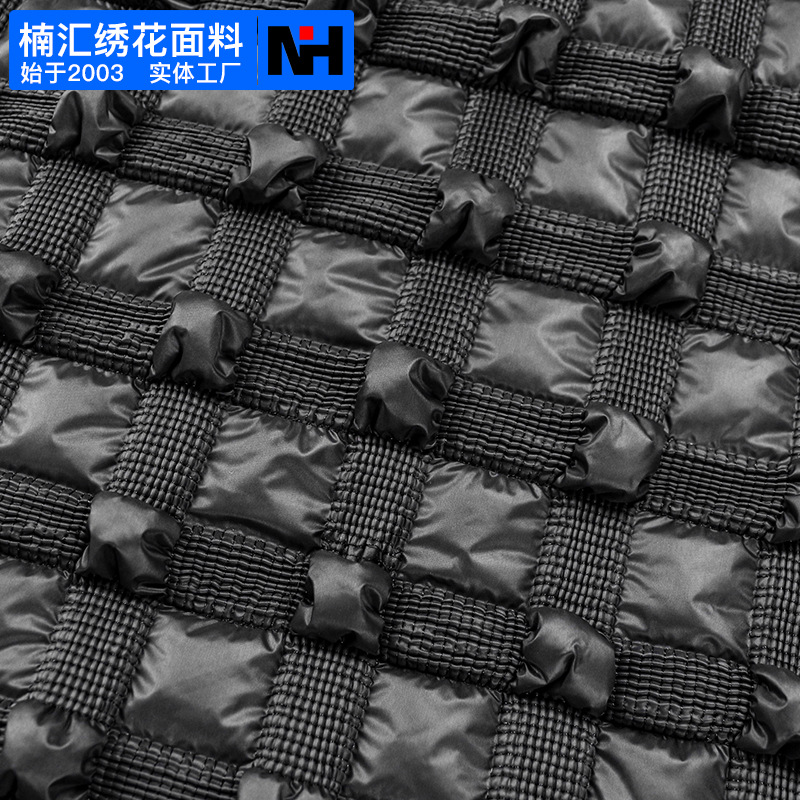 デザイナー刺繍生地ナイロン弾力刺繍クリップ綿立体刺繍泡格子バッグ綿服刺繍生地