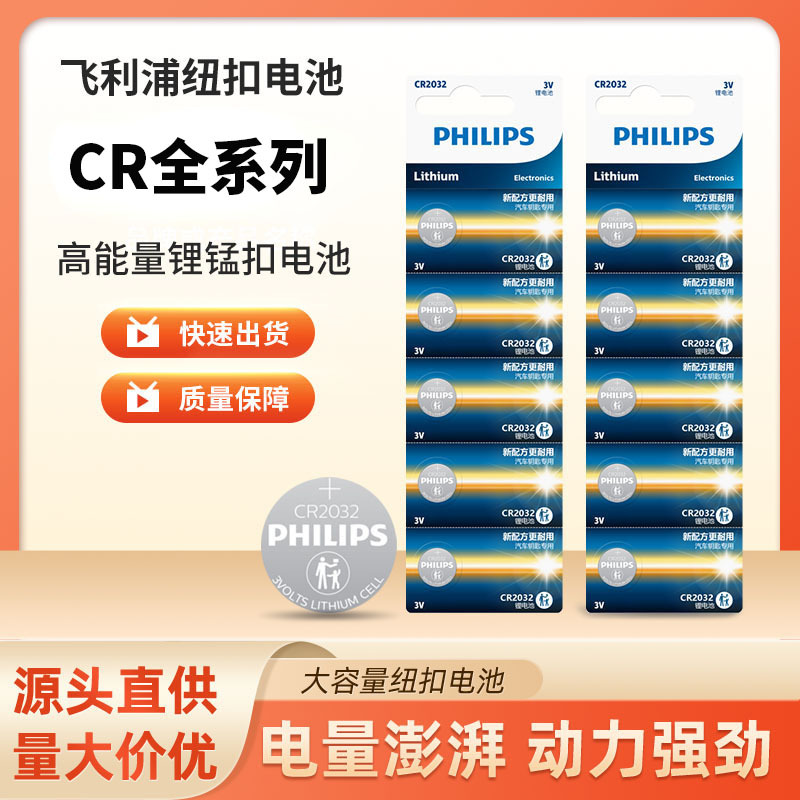 飞利浦纽扣电池CR2032锂电池CR2025/CR2016/CR2430适用宝马别克