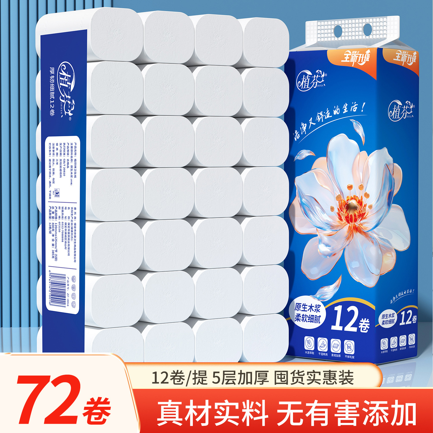 72巻原木トイレットペーパー家庭用実恵装木材パルプロール紙フルケース手紙トイレトイレットペーパーロール紙ティッシュDF