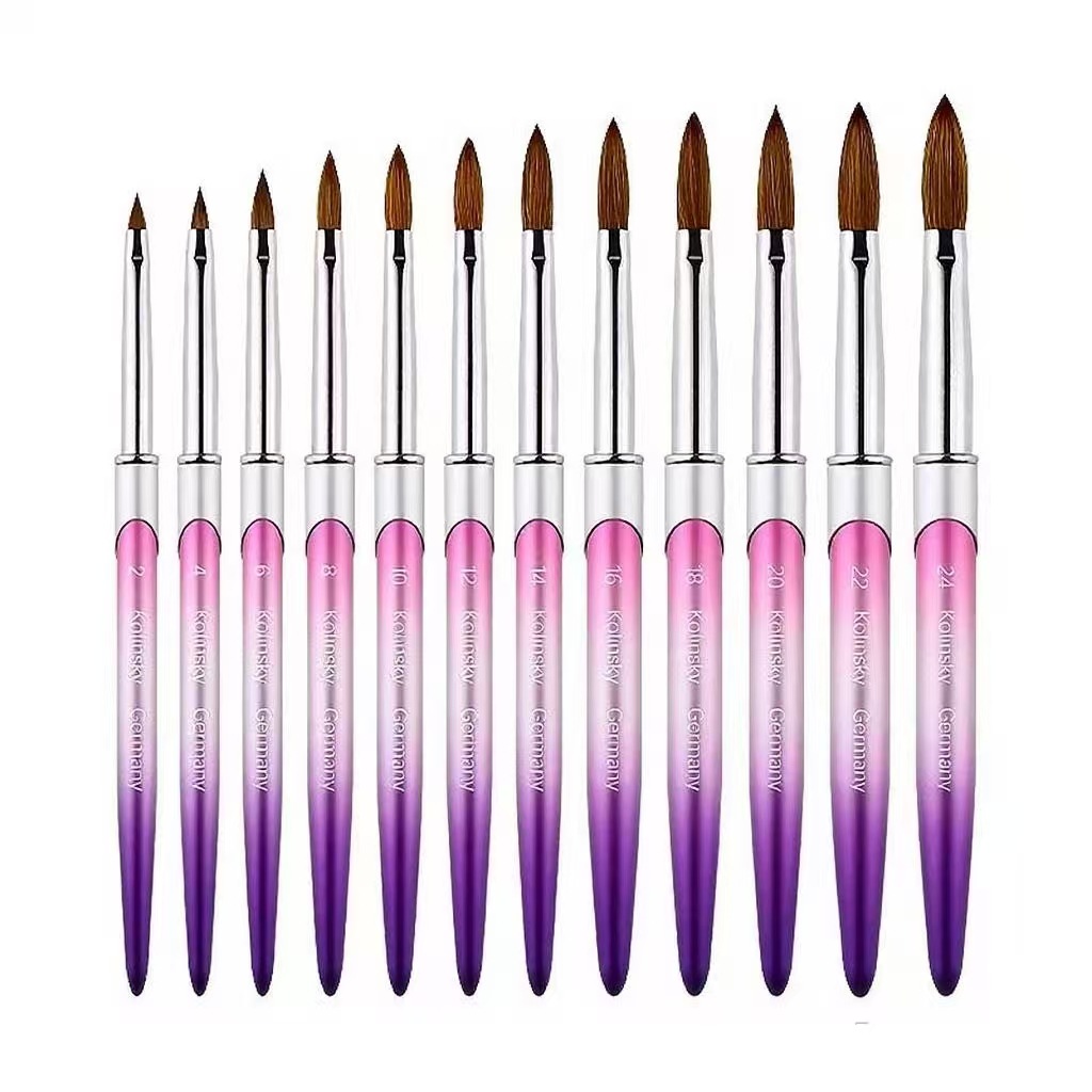 跨境美甲纯貂毛金属渐变杆指甲水晶笔光疗笔彩绘笔雕花笔笔刷工具