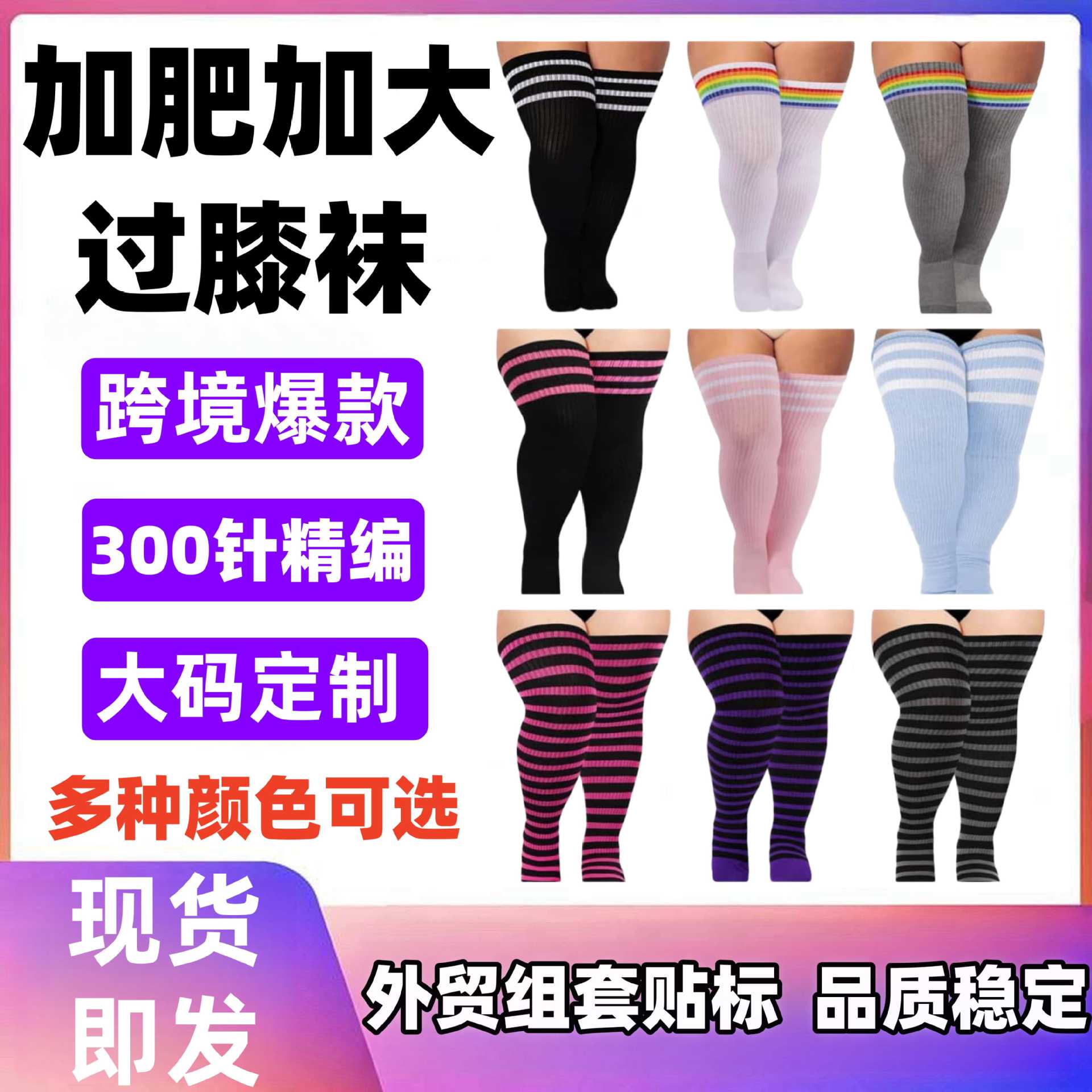 越境アマゾン新作特大サイズ膝上ソックス女性用ロング丈秋冬綿美脚圧力ソックス