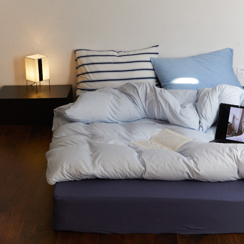 Ins風青混着裸寝綿ニット綿四点セット布団カバー純綿天竺綿シーツ1.8m