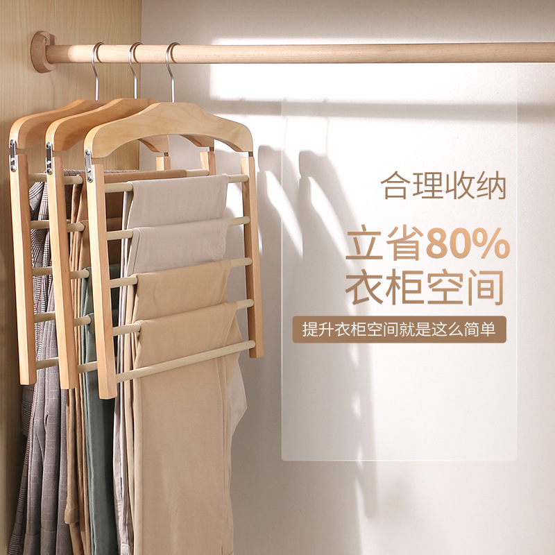 実木ズボン棚植毛多機能折り畳みズボン専用ハンガー家庭用多層ズボン掛けたんす収納神器