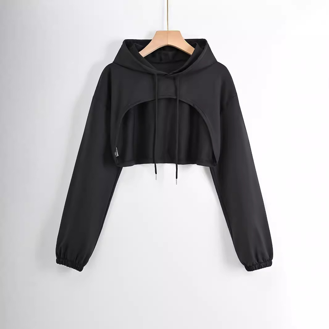 外国貿易クロスボーダー婦人服女性カット超ショートタイプのパーカー長袖フード付きスポーツシャツ