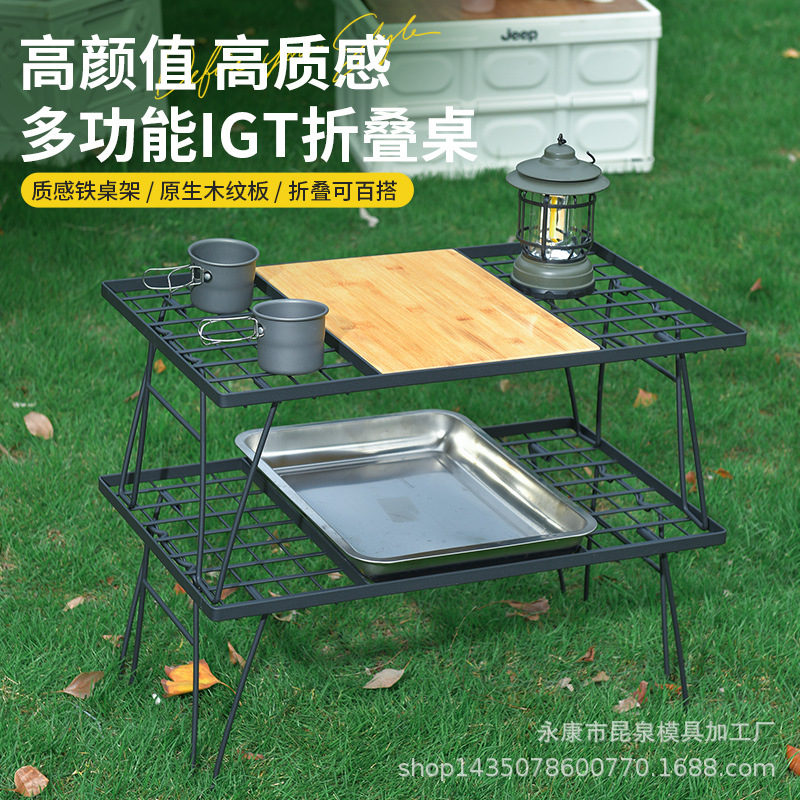 屋外キャンプ折り畳み式ポータブルigtテーブルキャンプテーブルグリッド多機能テーブルユニットボードピクニック鉄メッシュテーブル