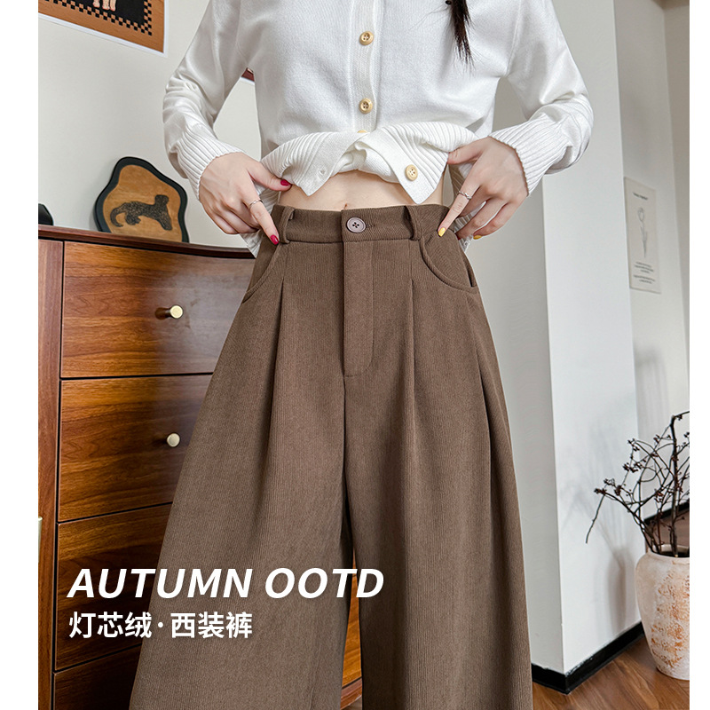 メイラードコーデュロイパンツ レディース 秋新作 スリム ルーズスーツパンツ カジュアル ストレート ハイウエスト ワイドレッグパンツ レディース