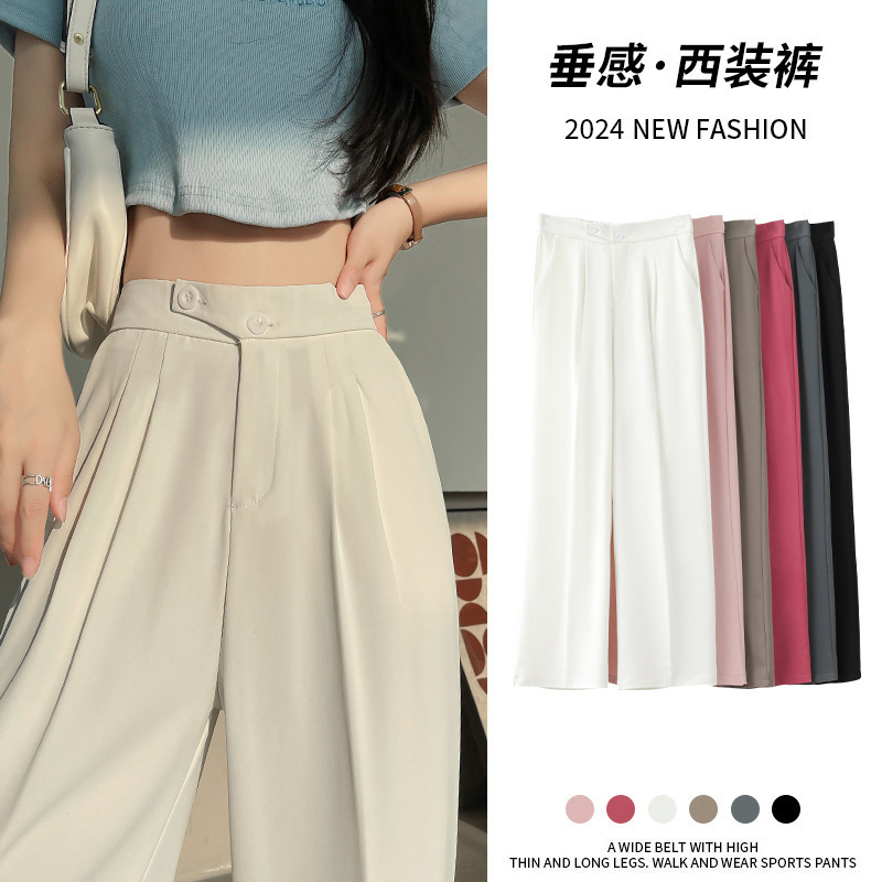 ホワイトミルクスーツパンツ秋の新作レディースパンツ女性のスリムハイウエストストレートパンツルーズレイジーワイドレッグパンツ