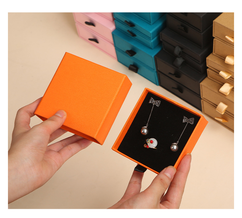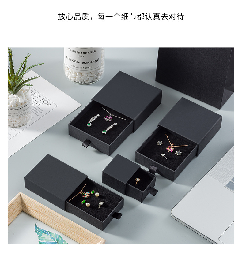 メーカー既製ジュエリー紙箱引き出し箱クラフト紙ジュエリーボックスリングネックレス収納ボックス黒イヤリング卸売