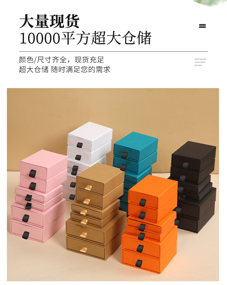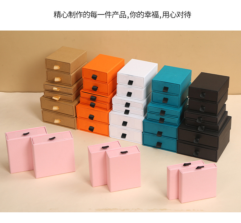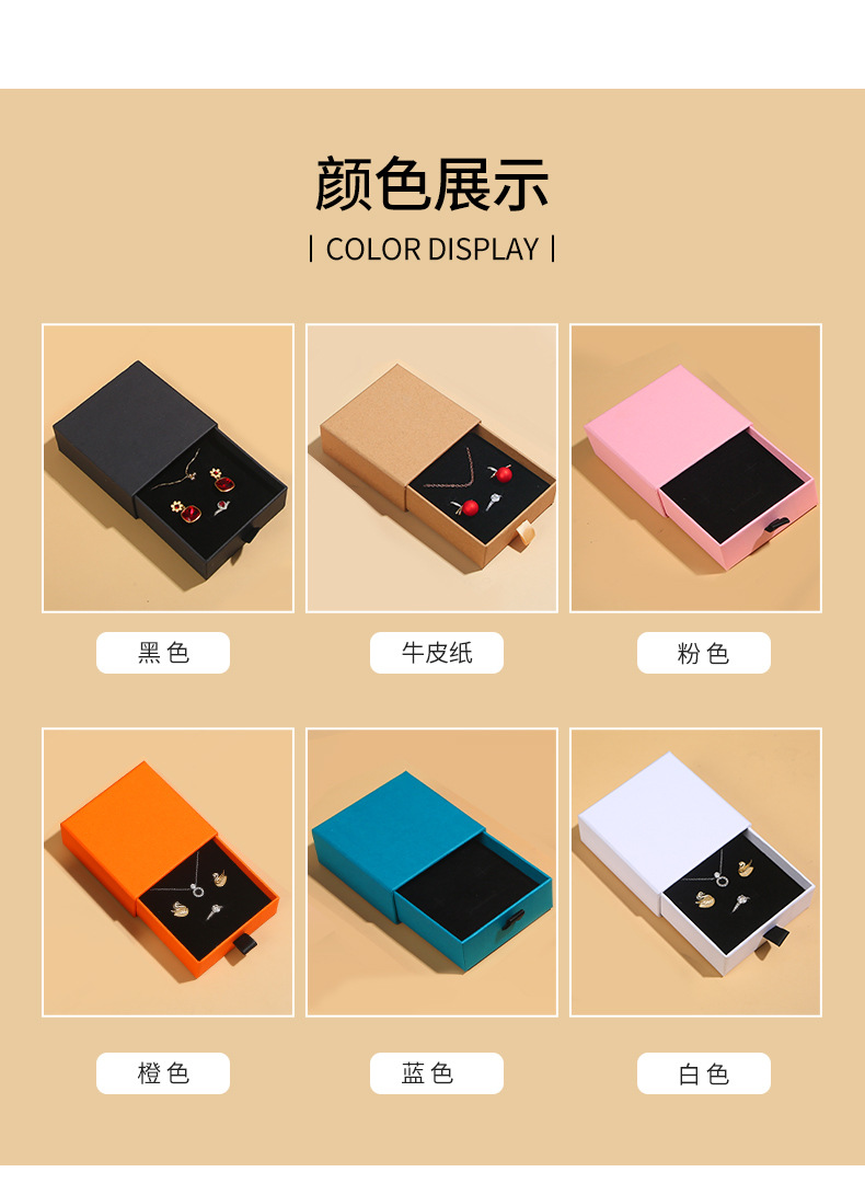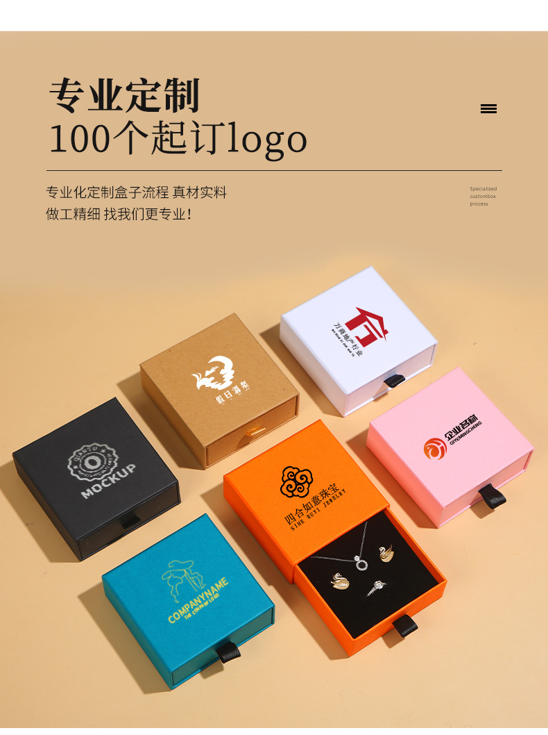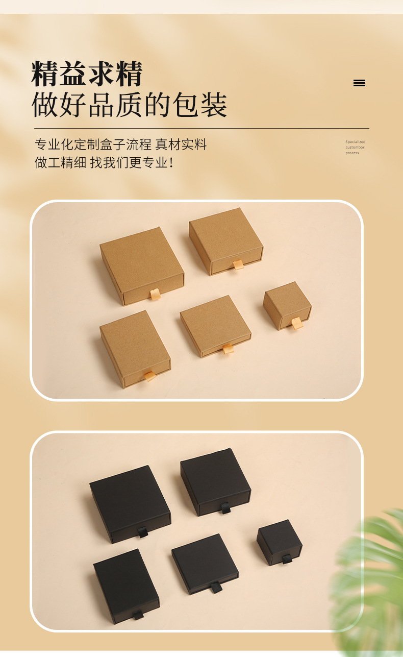 メーカー卸売りクラフト紙アクセサリー箱引き出しジュエリー包装箱ピアスネックレス指輪箱黒ロゴ印刷