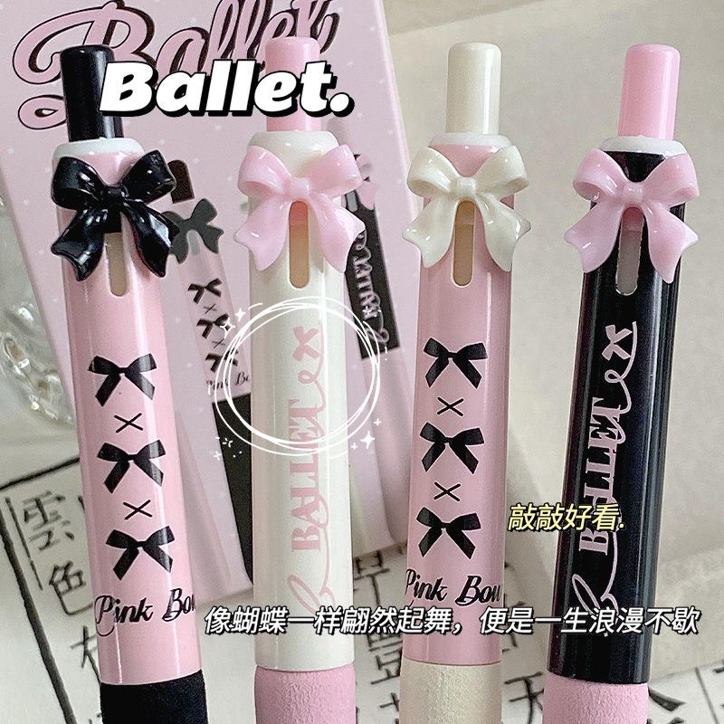 芭蕾蝴蝶结按动中性笔水墨黑白蝴蝶ins风高颜值女生学生考试刷题