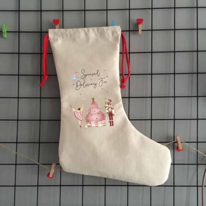 Diy熱昇華印刷細麻クリスマス靴下麻布ギフト靴下ポケットメーカー直販