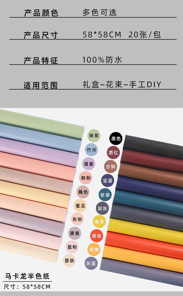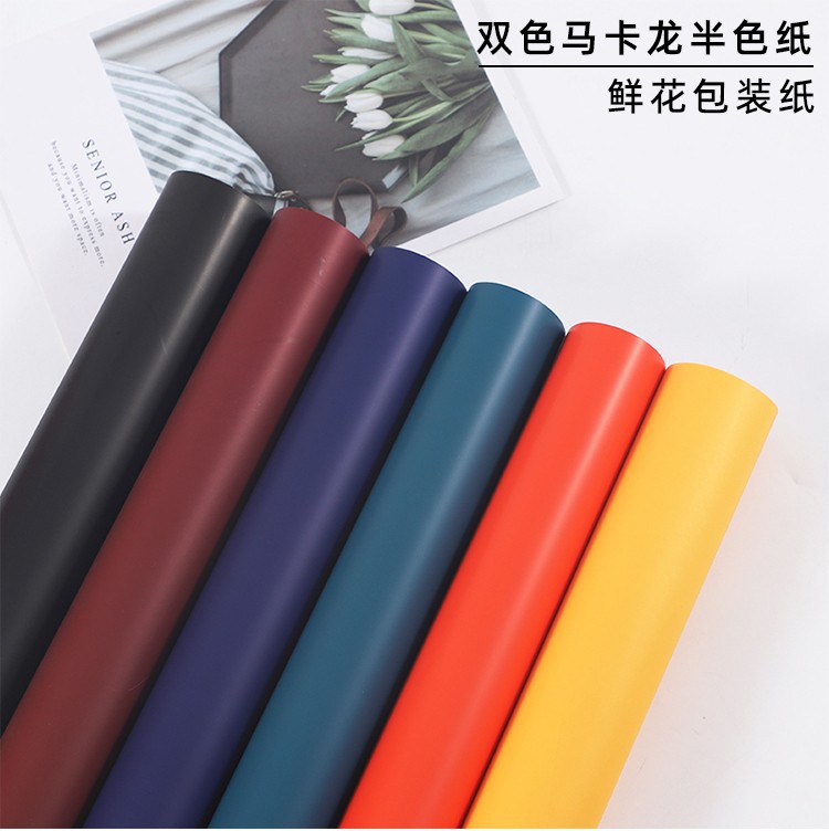 ツートミマカロン2色花柄紙花束半色紙防水花芸花屋包装材料花包装紙