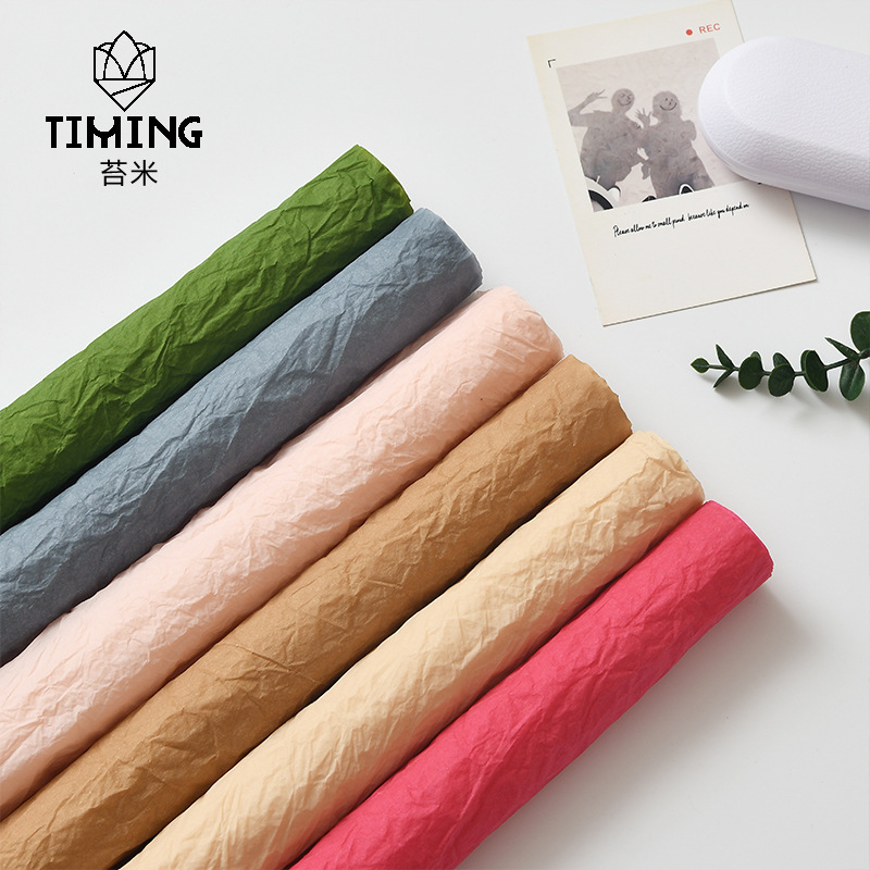 苔米雪奈紙蓬蓬蓬手揉紙しわ紙防水霧面原生紙花芸資材花包装紙