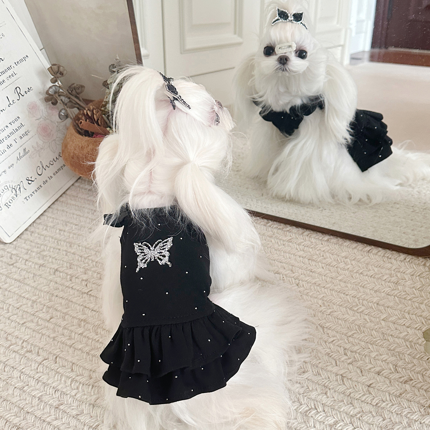 米法亚厂家直销宠物猫狗打底衣春秋纯棉蝴蝶钻裙闪钻飞袖公主裙