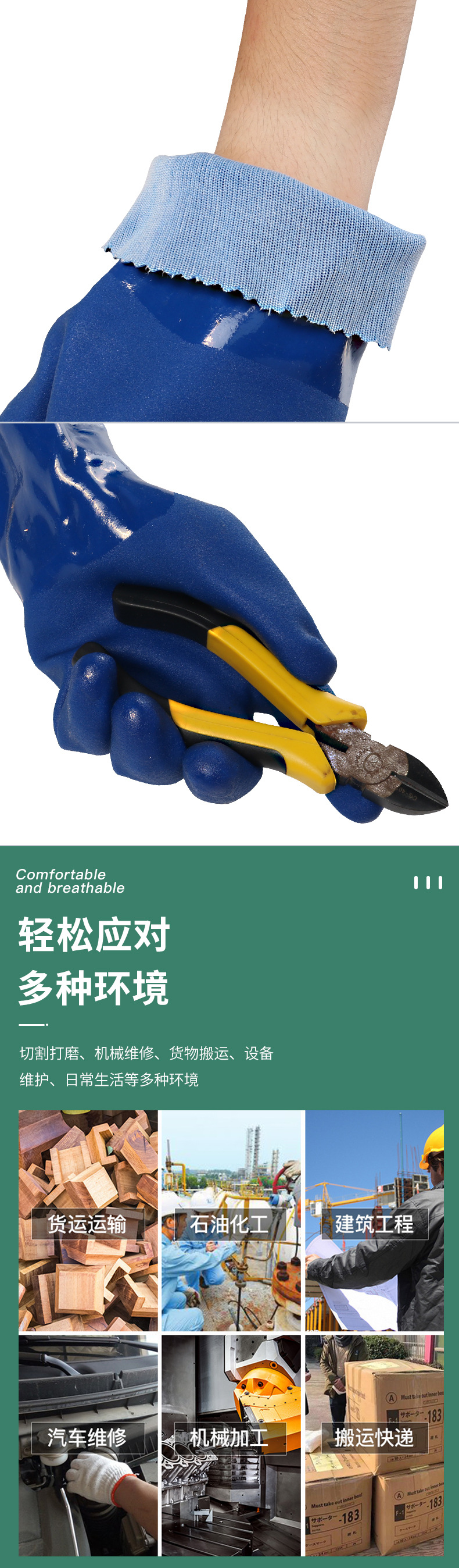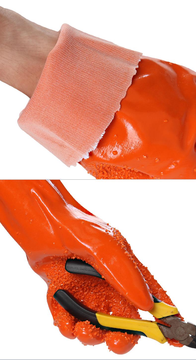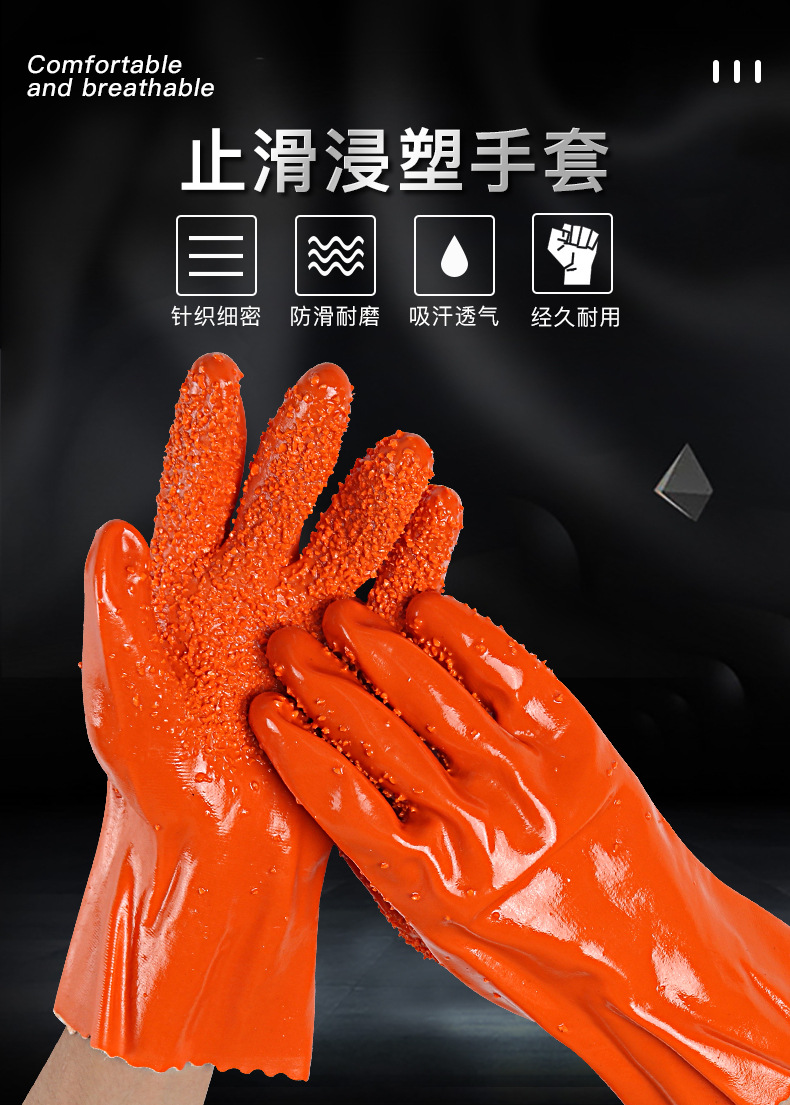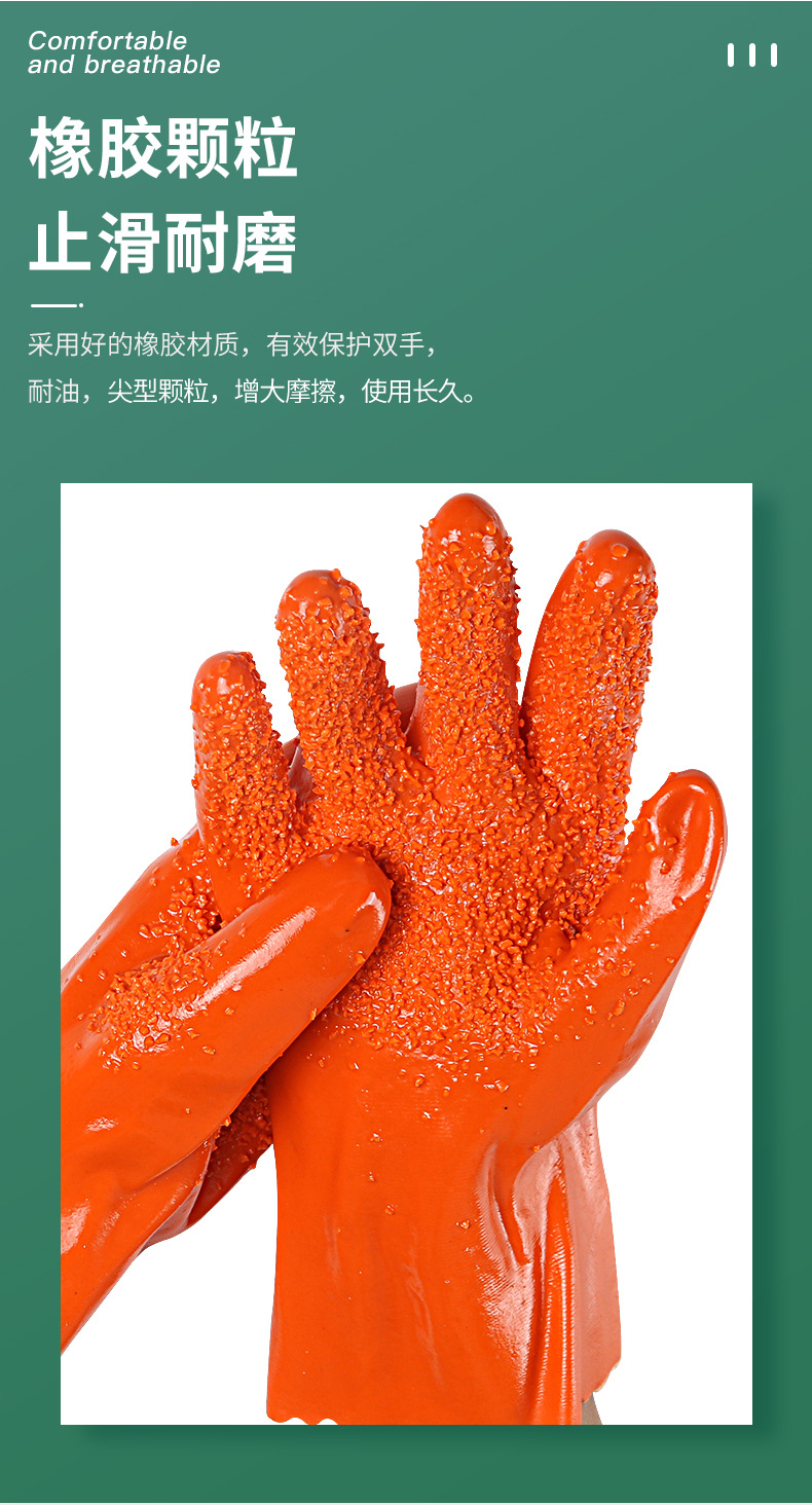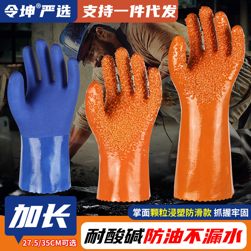 卸売りゴム顆粒防油手袋pvc浸塑手袋工業防水防弱酸アルカリ耐油増厚手袋