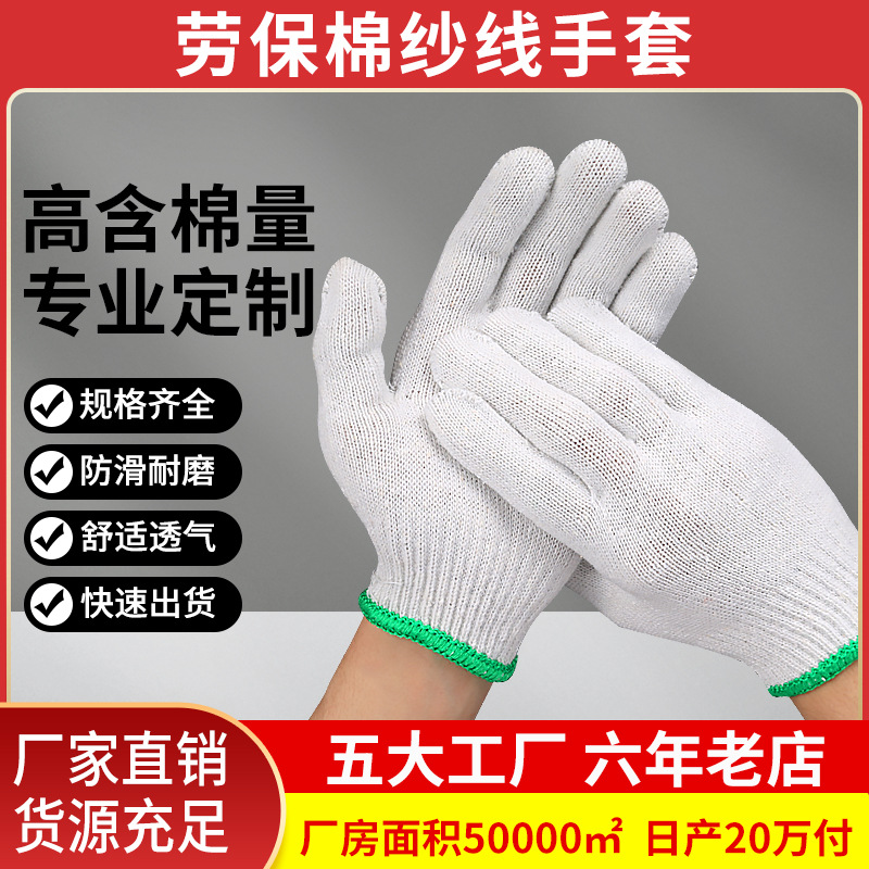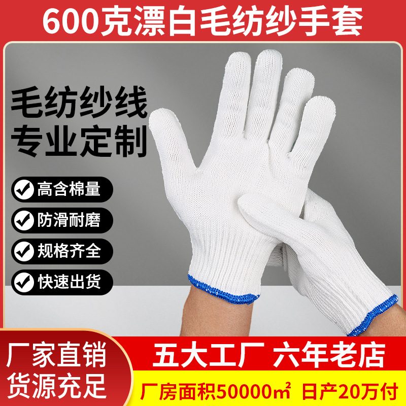 綿糸手袋600グラム卸売り十針漂白毛紡織労働保護綿糸手袋厚い耐摩耗防護手袋