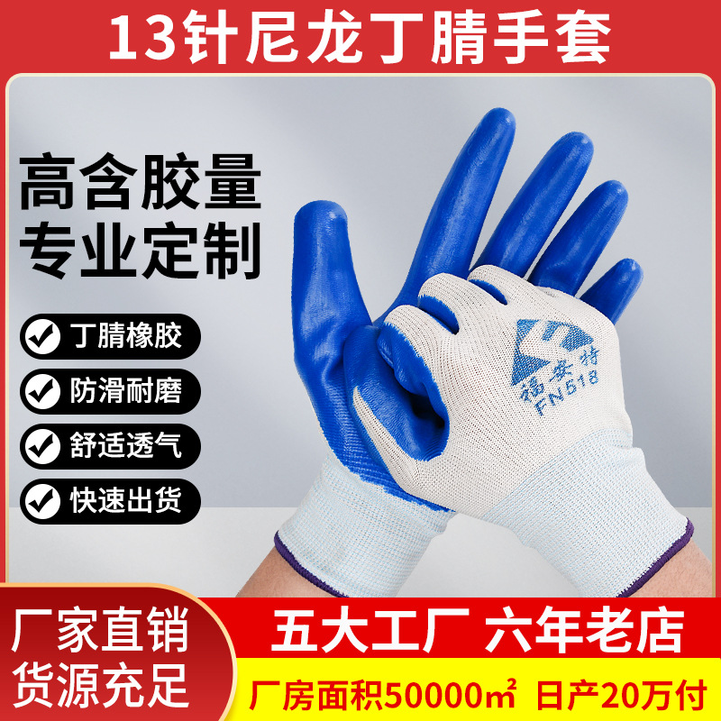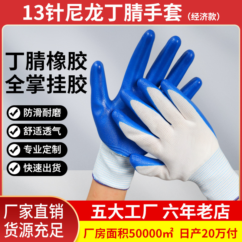 専門家は、建設現場用の耐摩耗性ラテックス労働保護手袋用の 13 ピン ナイロン ニトリル吊りゴム ニトリル手袋を選択します。