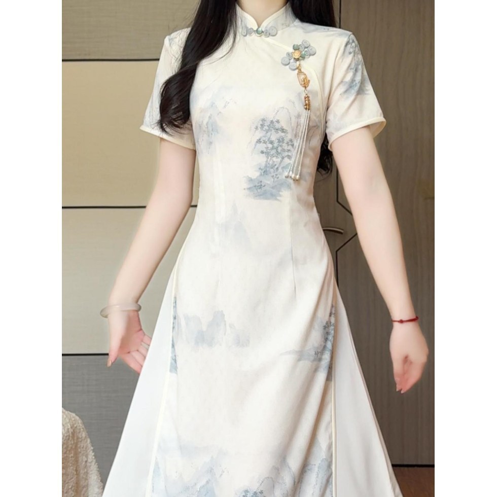 小柄な白いレトロ改良チャイナドレス2025秋の新しい女の子の日常的な気質の高級ショートドレス