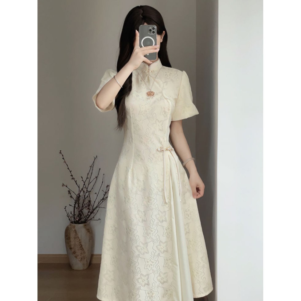 夏のチャイナドレススーツ2025新しい国民風レトロデイリーベージュレースヤングスタイルハイエンドエレガントな改善