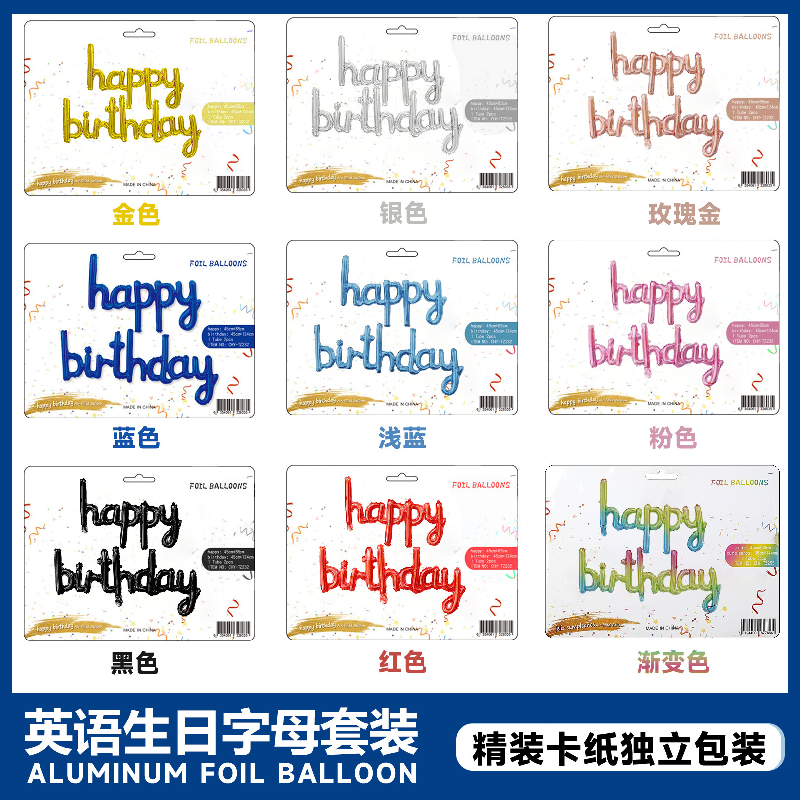 16インチ诞生日アルファベットアルミ膜バルーン卸売パーティーアレンジ装饰用品happybirthday balloon