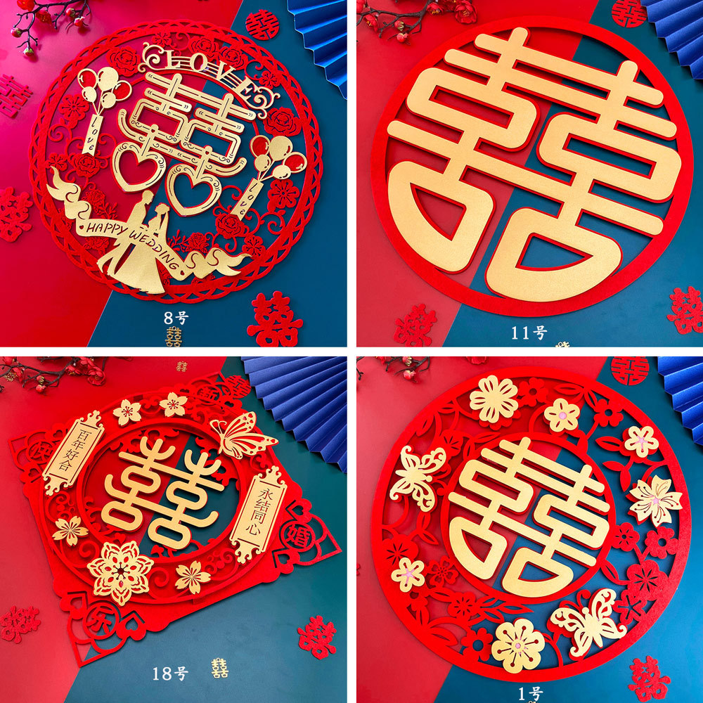 立体金カード喜字シール不織布フェルト布厚手カット紙結婚用品部屋装飾品窓飾り