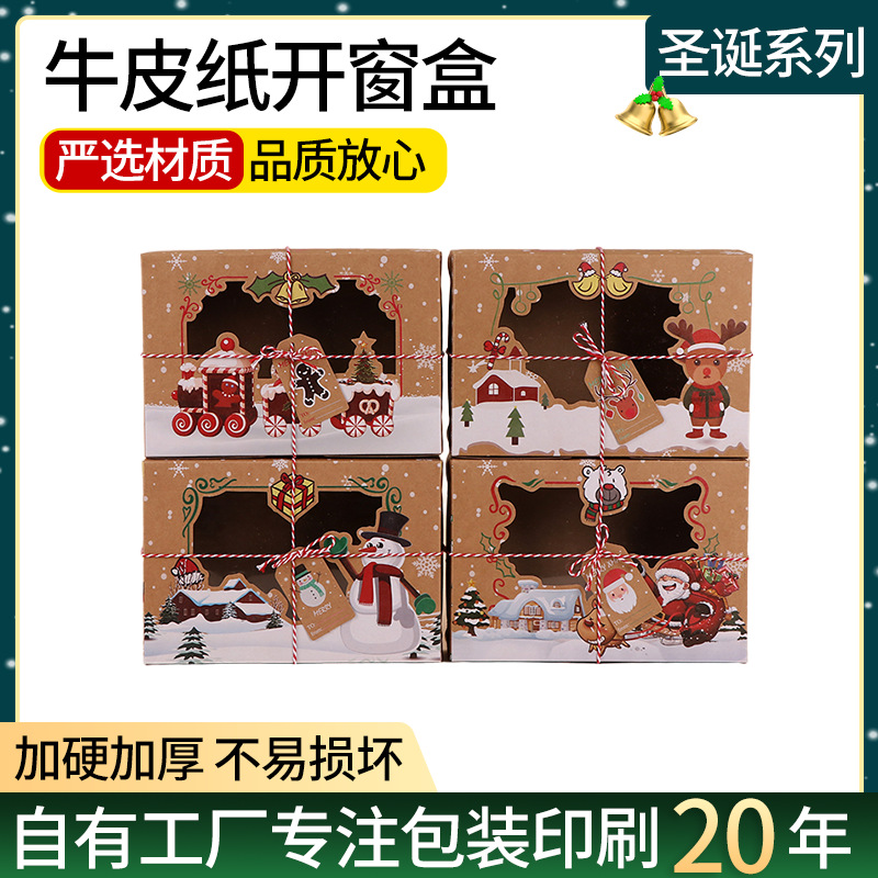 新しいクリスマスクラフト紙開窓ギフトボックスクリスマスクリエイティブヨーロッパ風クッキーボックスお土産焼きキャンディーボックス