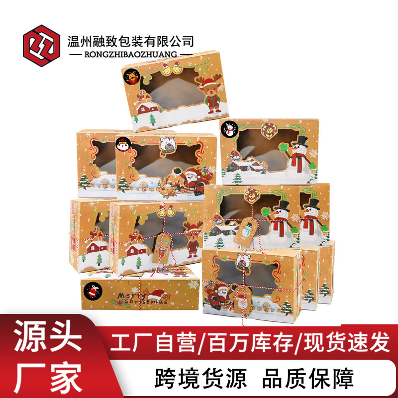 新しいヨーロッパスタイルのクロスボーダークラフト紙ビスケットボックスクリスマスクッキージンジャーブレッドボックスPVCウィンドウキャンディボックスギフトカラーボックス