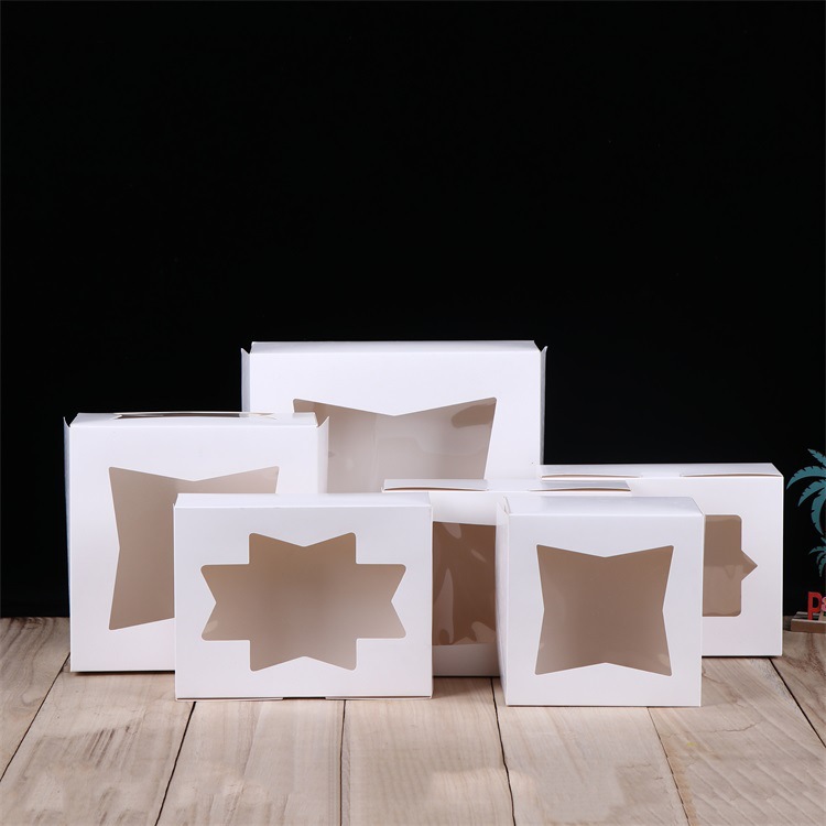 現物共通空白透明折り畳み窓開け食品ケーキデザート祭りお土産白カード包装紙箱