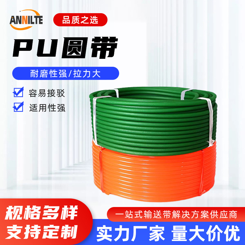 メーカー直販PUオレンジ光沢ポリウレタングリーン粗面シームレス丸帯黒色帯電防止耐摩耗丸ベルト