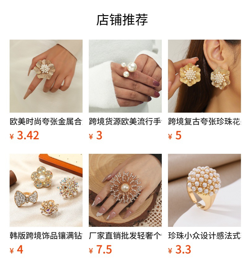 ヨーロッパとアメリカの人気のジュエリーの工場直接供給アマゾンファッション人差し指リング開口部調節可能なパールリング