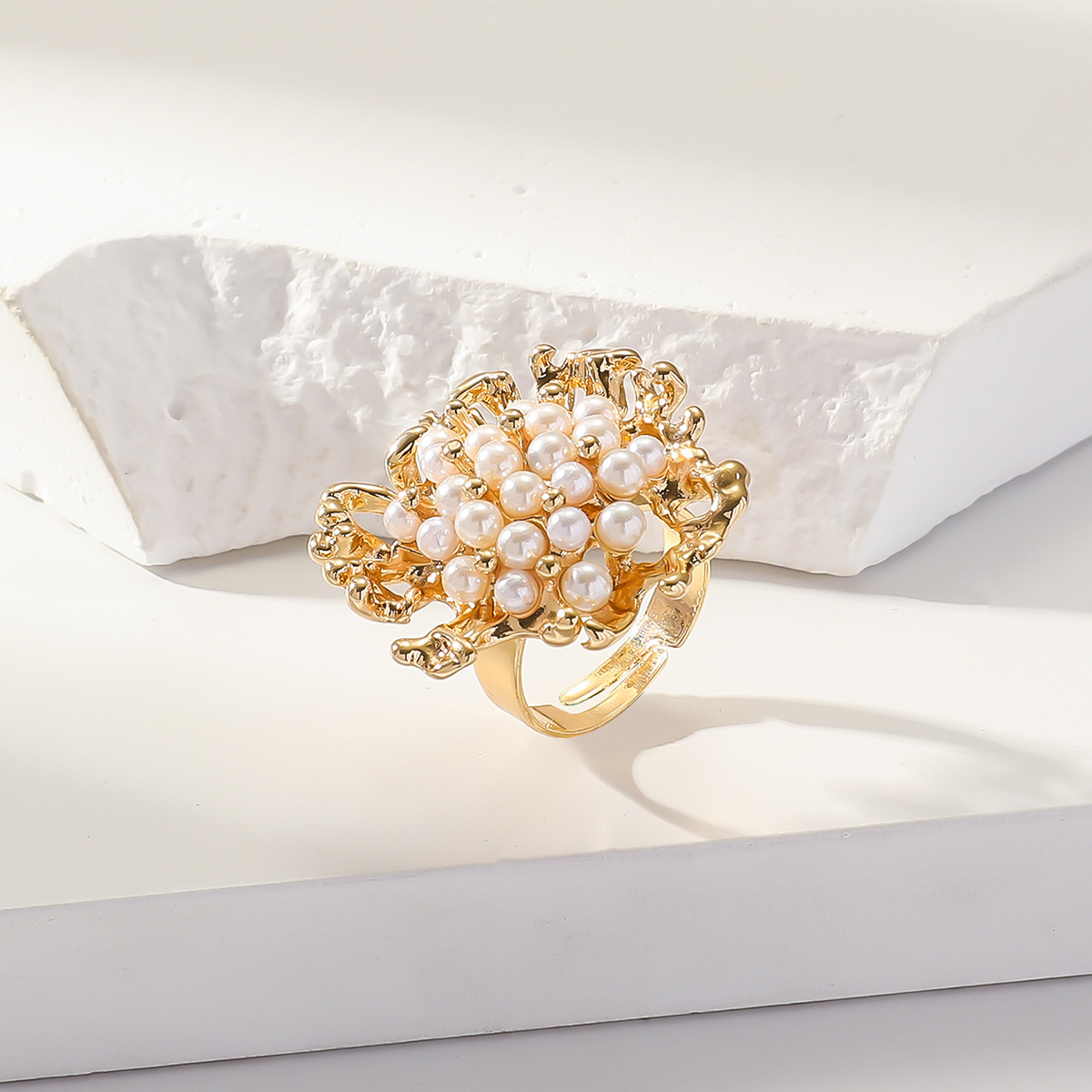 フレンチレトロファッションパーソナライズクリエイティブリング日本と韓国のニッチクリエイティブデザイン誇張オープンパールリング