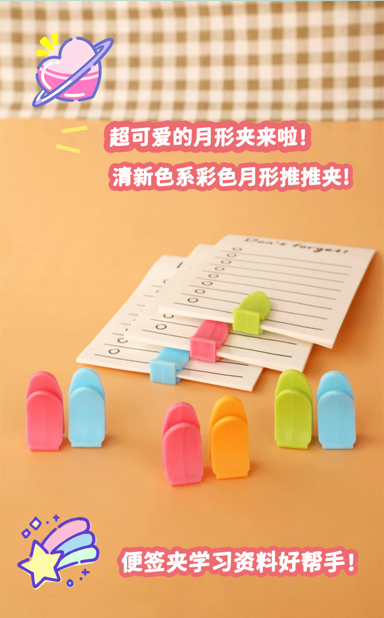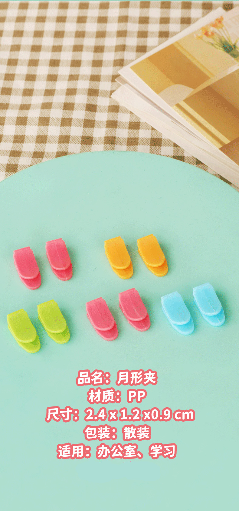 Pp耐久性異形クリップカラー小清新月形ブックマーク工場直販クリップ