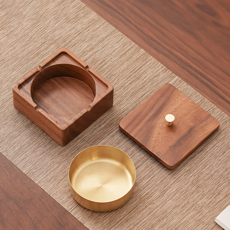 南米の胡桃木の実木灰皿の家庭用リビングルームは木の蓋を持っています。
