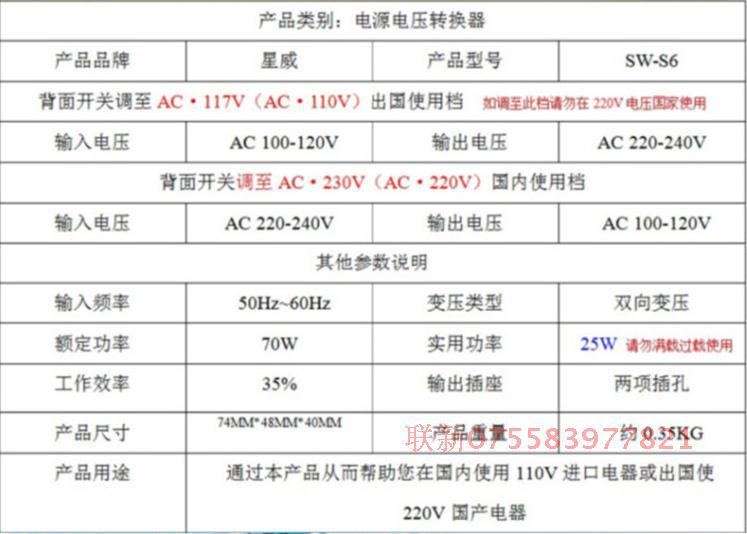 采用进口材料,高性能变压器及电路精工制造。主要用于国外不同电压之间转换输入输出电压功能。满足各种小家电产品的使用,但不能超过额定功率。方便您的携带,是您出国留学之物。
