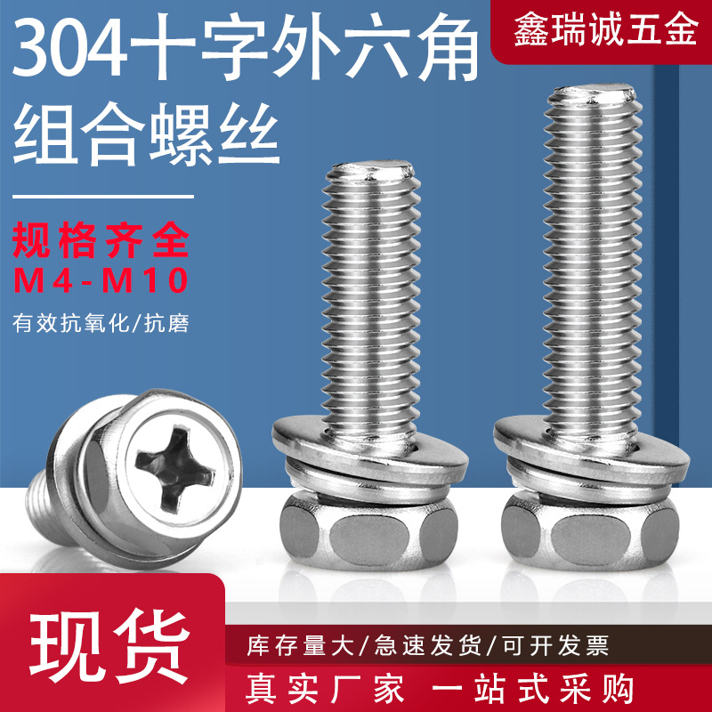304ステンレス鋼外六角頭三連組合ネジM4-M0十字外六角組合平座金ネジセット