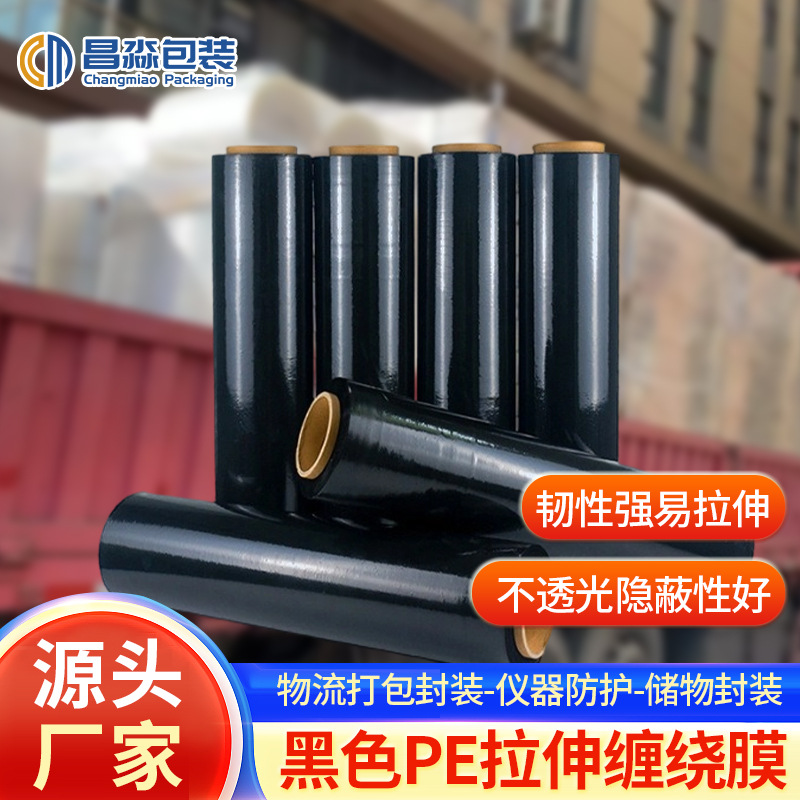 メーカー黒色巻きフィルムpeストレッチフィルム自己粘着包装工業黒色巻きフィルム大量卸売りスポット