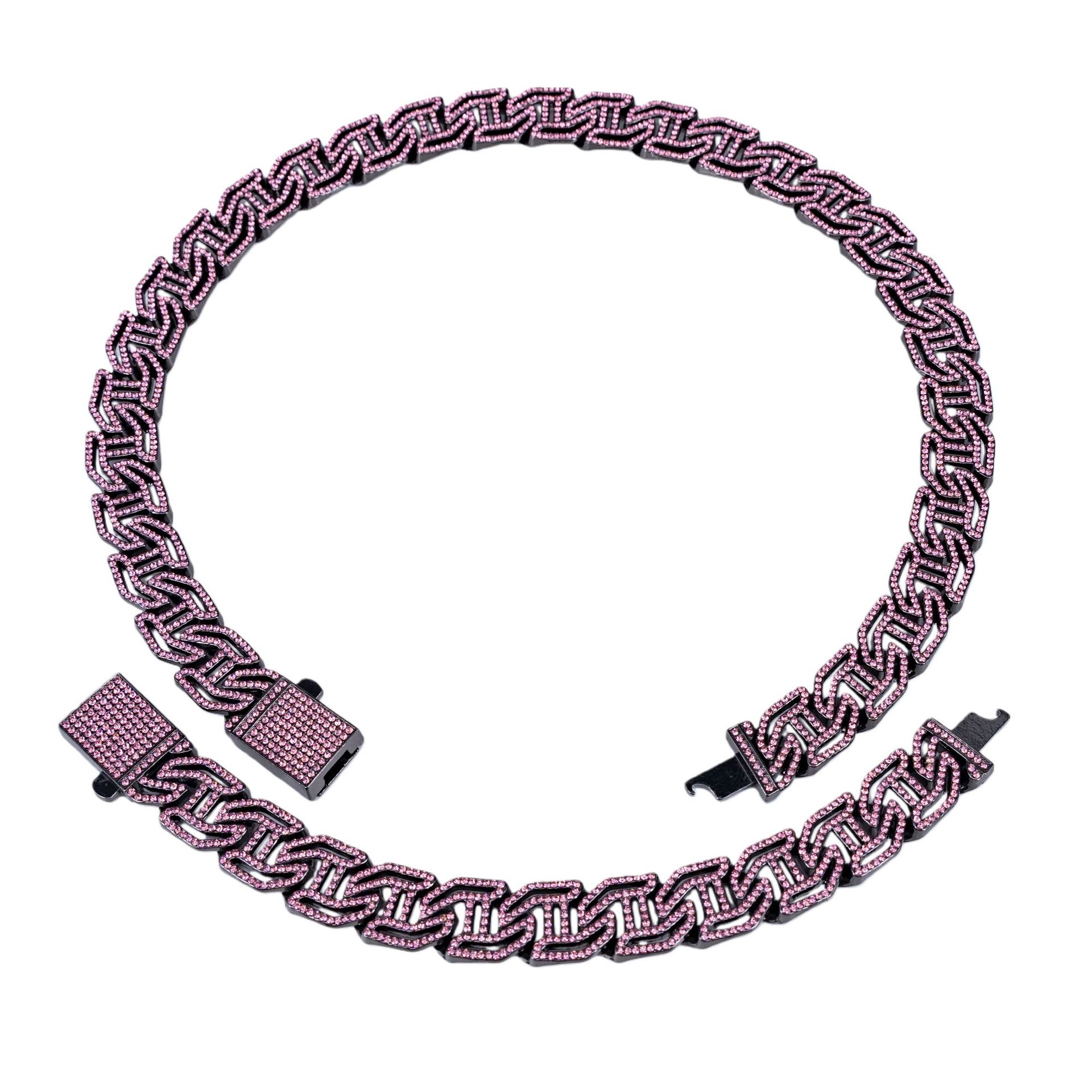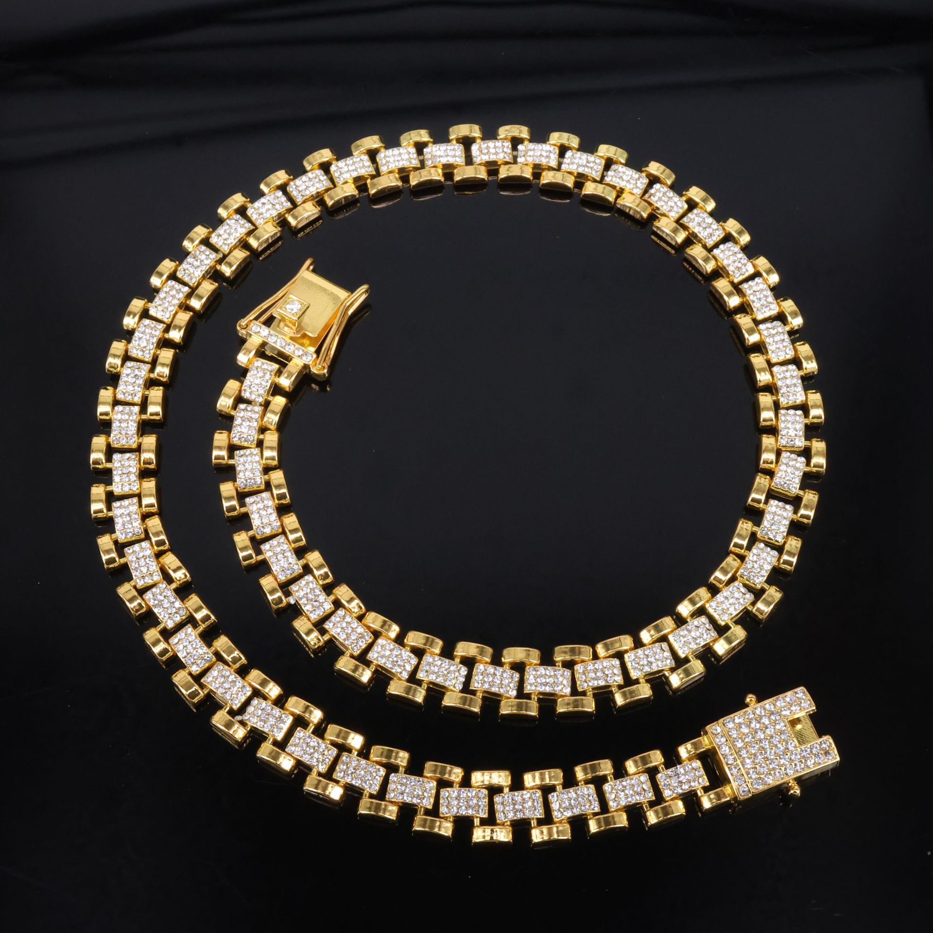 欧美16mm手表链合金镶钻男士项链 高级感个性酷炫跨境嘻哈古巴链