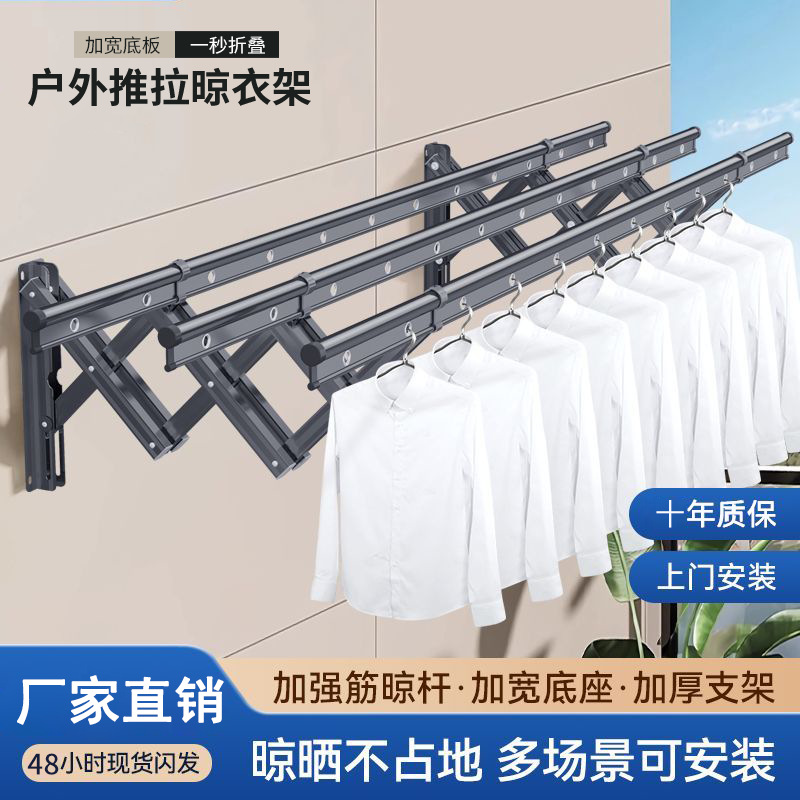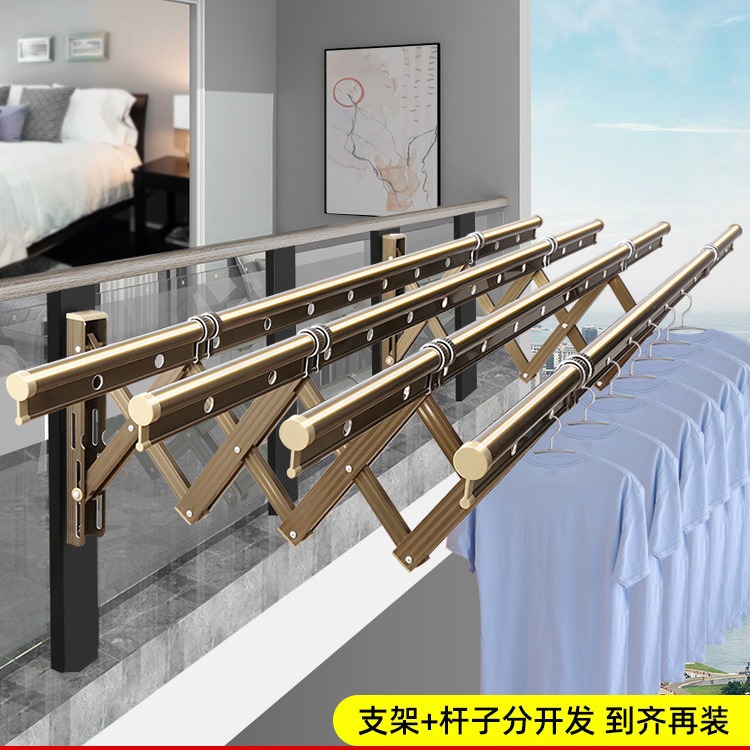 アルミ合金伸縮ハンガーベランダ窓外折り畳み物干しハンガー家庭用壁掛け折り畳み屋外プッシュプルハンガー