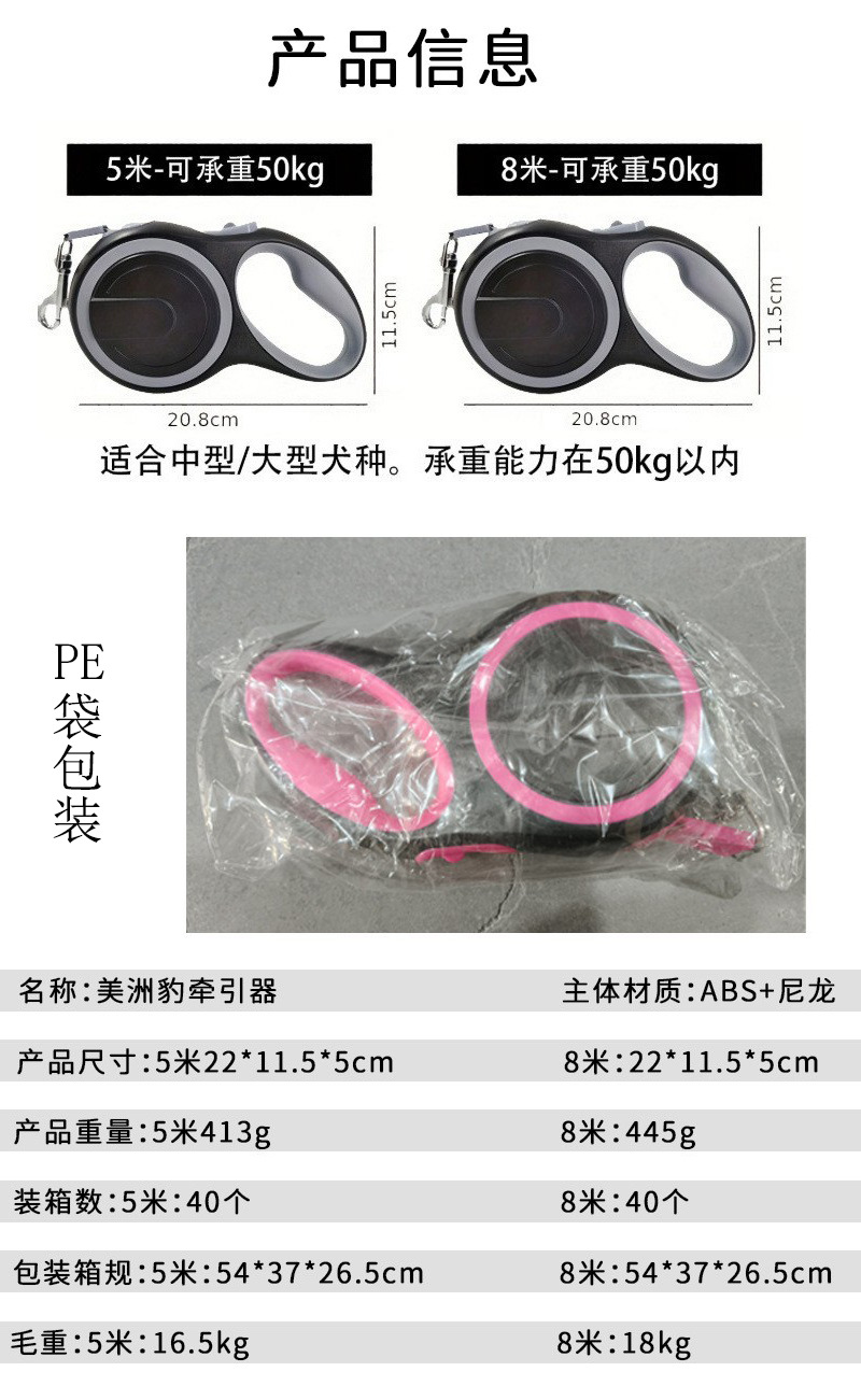 アマゾン工場直売ペット牽引ロープ犬牽引器自動収縮犬チェーン用品卸売り